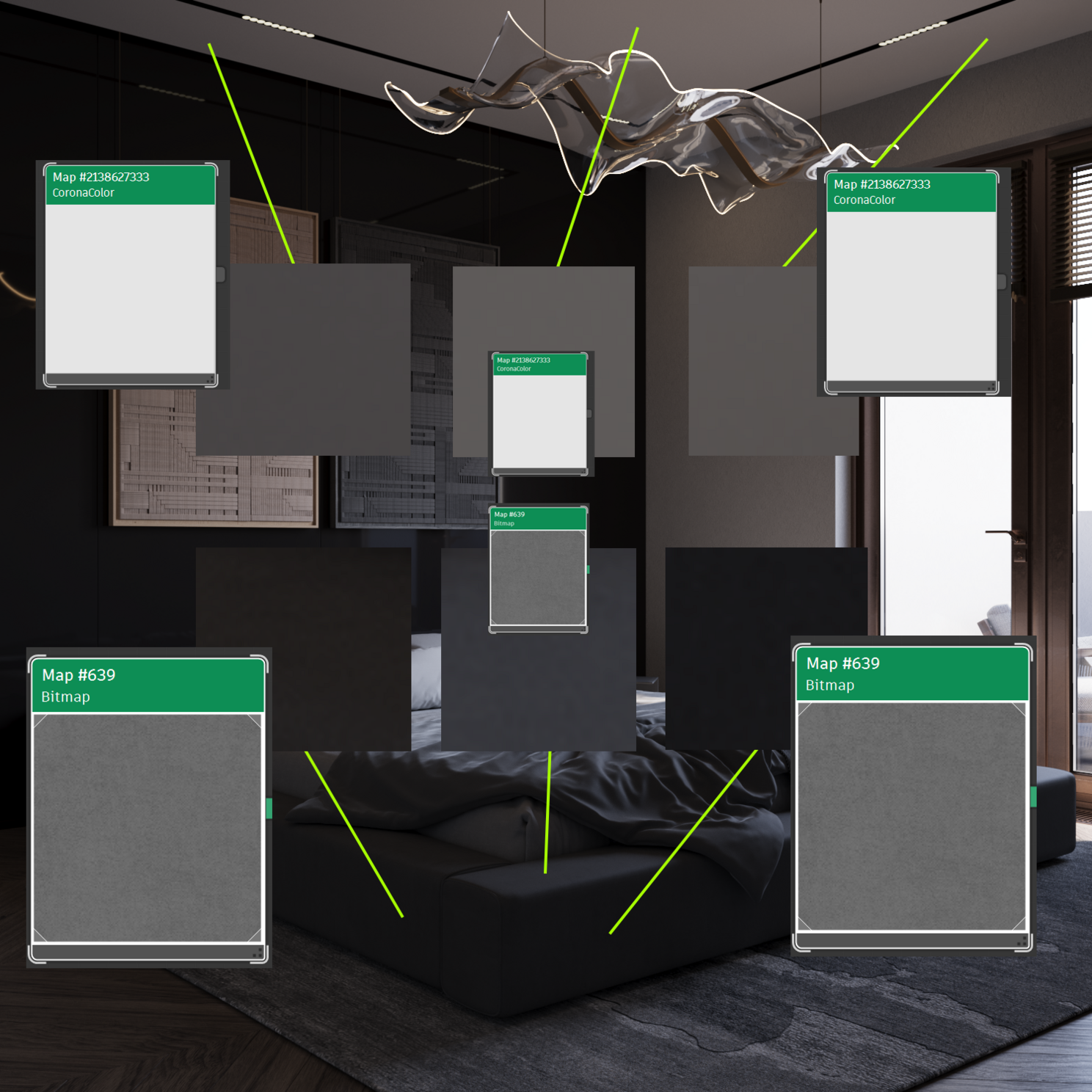 Важное отступление. В реальной работе, если вы используете такую подменку, важно понимать, что средне серый материал (128 по шкале яркости), обладает достаточно высоким параметром светопереноса. И не всегда, ваши итоговые материалы отделки и мебели с оборудованием, будут ему соответствовать. Старайтесь использовать общий светоперенос помещения близким к итоговому (если используете подменку для настройки освещения).