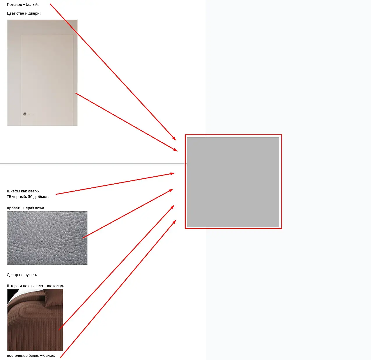 Следующая вводная справедливая для 3д визуализации. Она всегда разрабатывается на основе пакета материалов, это и текстовые, и графические референсы, примеры, образцы или готовые куски (3d-модели в интерьер, например). Задача 3д визуализатора создать на основе таких исходных данных цельную единицу контента на выходе (читай картинку/ видео).