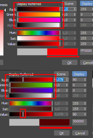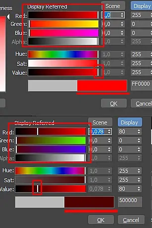 Видно что эталонный цвет нигде не присутствует в сцене. то есть мы вводим смотрящего в заблуждение, говоря о том что наш цвет нигде не будет соответствовать референсу. ни в ярком свете, ни в ровном освещении, ни в тени.