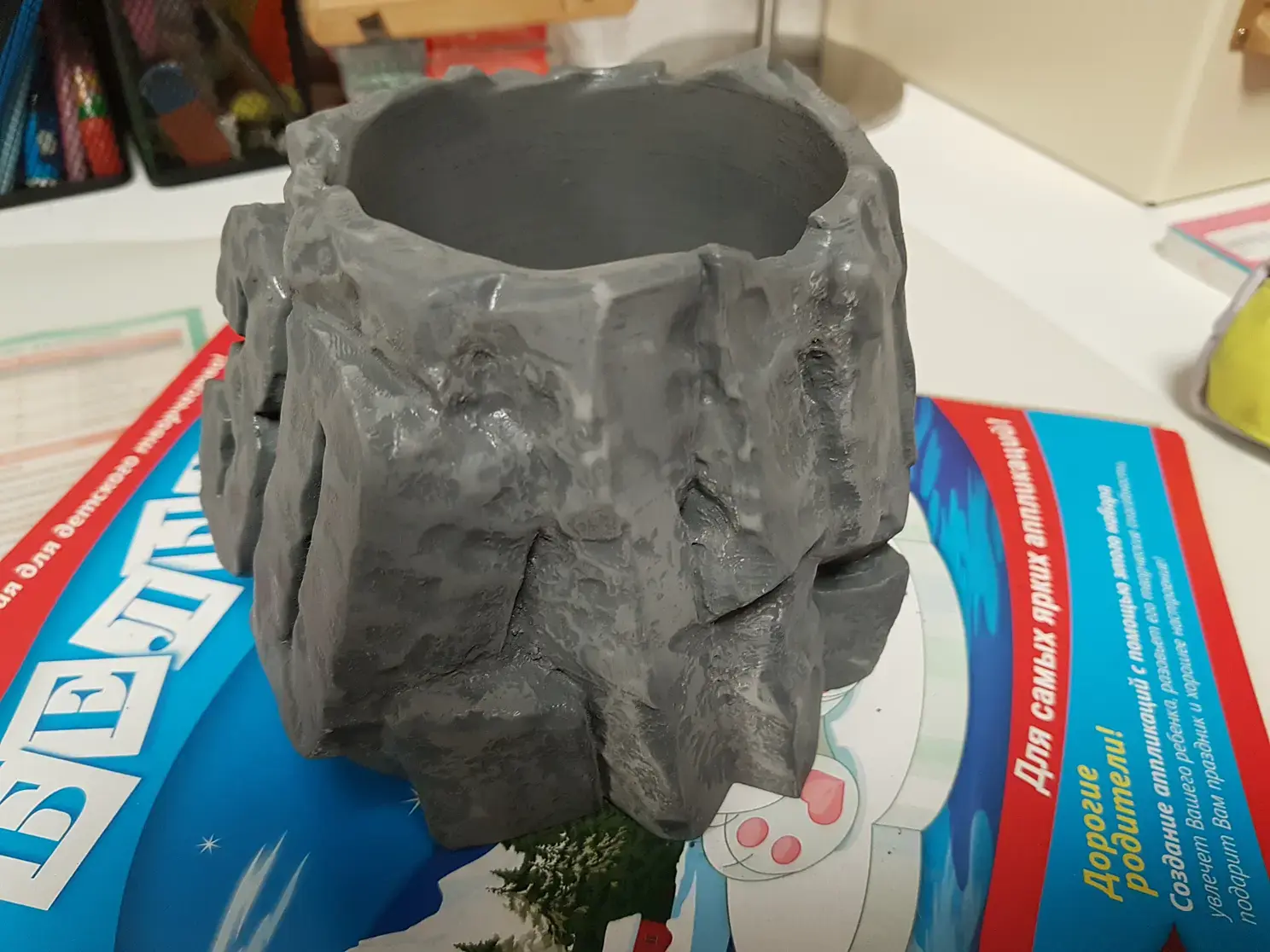 Потом шпаклевка и грунтовка. Шпаклевка в данном случае несет только декоративную функцию. Методом тампования я нанес "шубу" из шпаклевки, чтоб придать камню текстурности. Шпаклевка и грунтовка любая, по пластику.