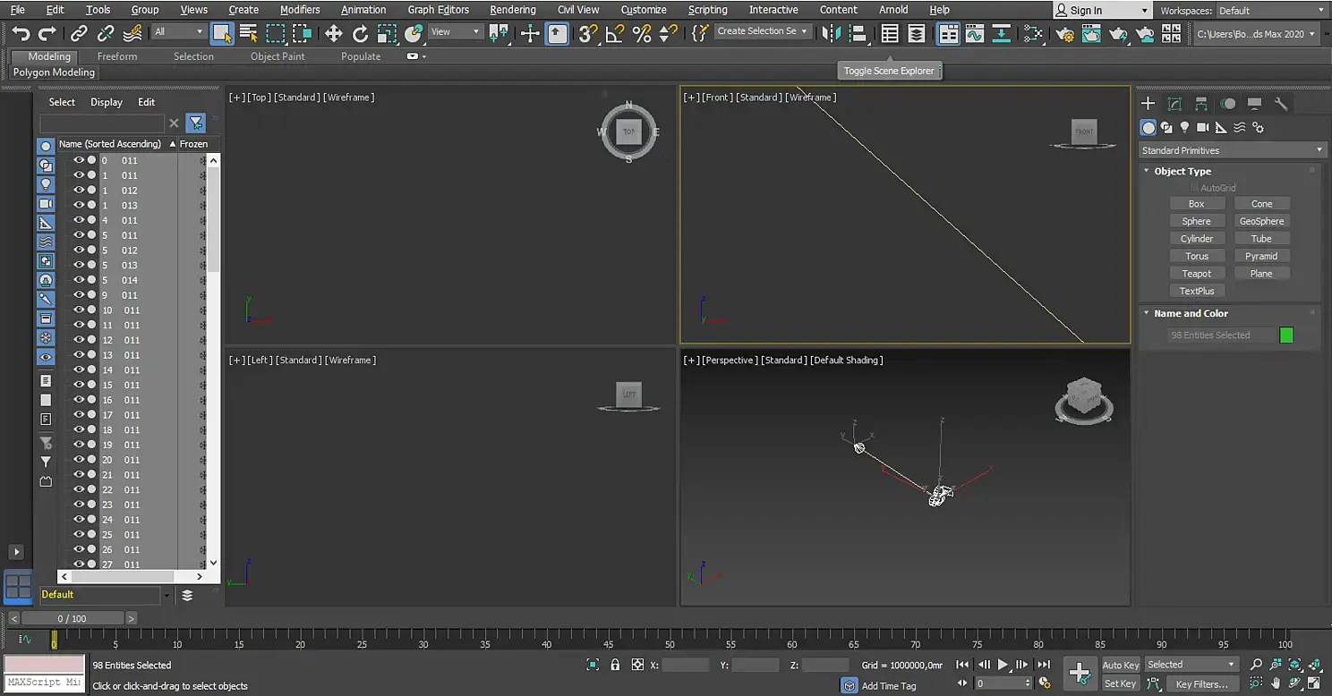 Теперь фокусируемся на наш проект в каждой проекции макса, чтобы было удобнее контролировать изменения, да и вообще делать что-либо. Наводим мышку в каждое окно и нажимаем кнопку «Z» на клавиатуре.