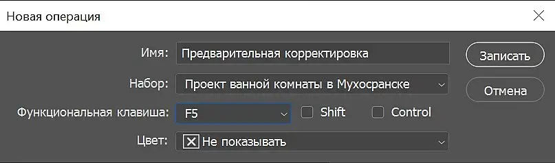 Для автоматизации данного процессе, давайте создадим Action (операцию), который будет это все делать за нас (помните, после начала записи операции, каждый клик, каждая кнопка будут записаны в action и могут привести к неправильной работе скрипта, что в целом лечится удалением этой лишней операции в action (простите за туфтологию)):