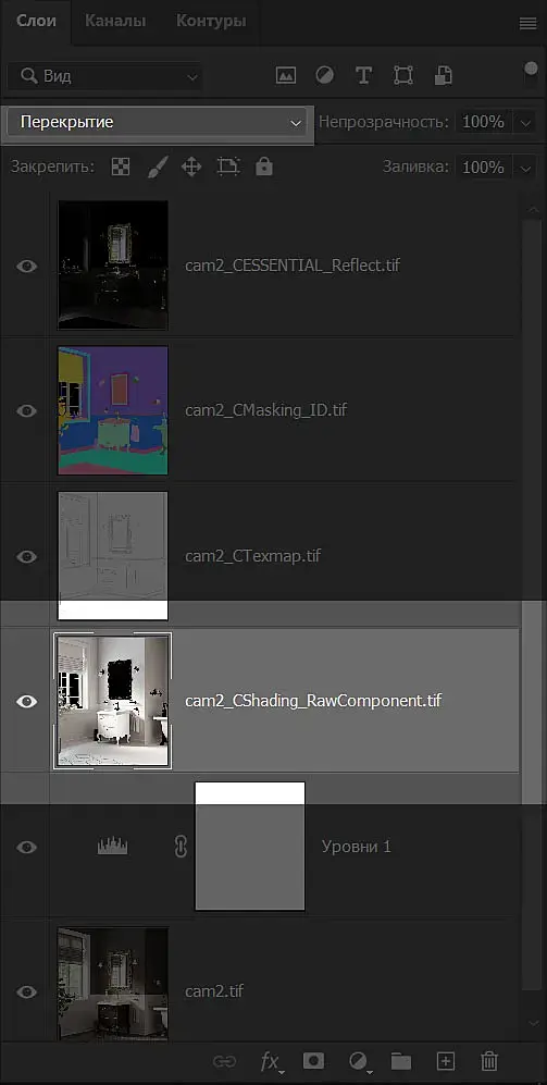 12. Нажимаем Alt +] для выбора поверх лежащего, следующего слоя (В моем случае это CTexmap с картой АО).