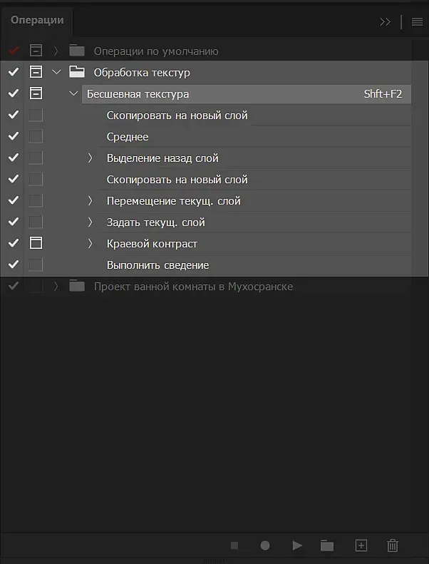 1. При необходимости, в окне операций создаем и переименовываем новую папку, например, «обработка текстур» или «мои скрипты»
