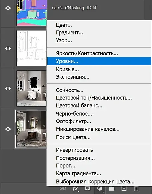 8. К примеру, создаем корректирующий слой «уровни».