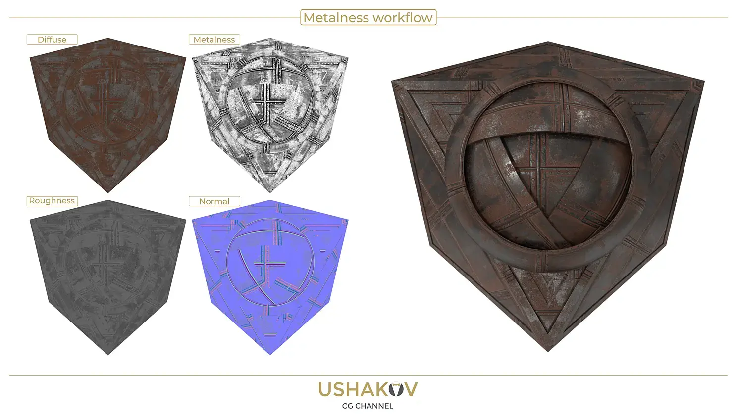 Для Metalness workflow используется базовый сет из следующих растровых карт
