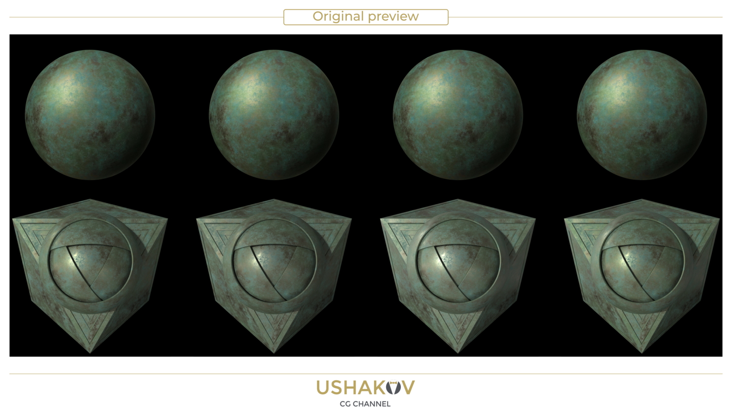 Тут сложно дать однозначный и объективный комментарий и сделать какое то сравнение, так как у меня нет возможности задействовать HDRi карту, которая использовалось для рендеринга оригинального превью у шейдера. Так что «ноу комментс…» Оригинал поярче, но не факт что у превью не «подкручивали» цветность.
