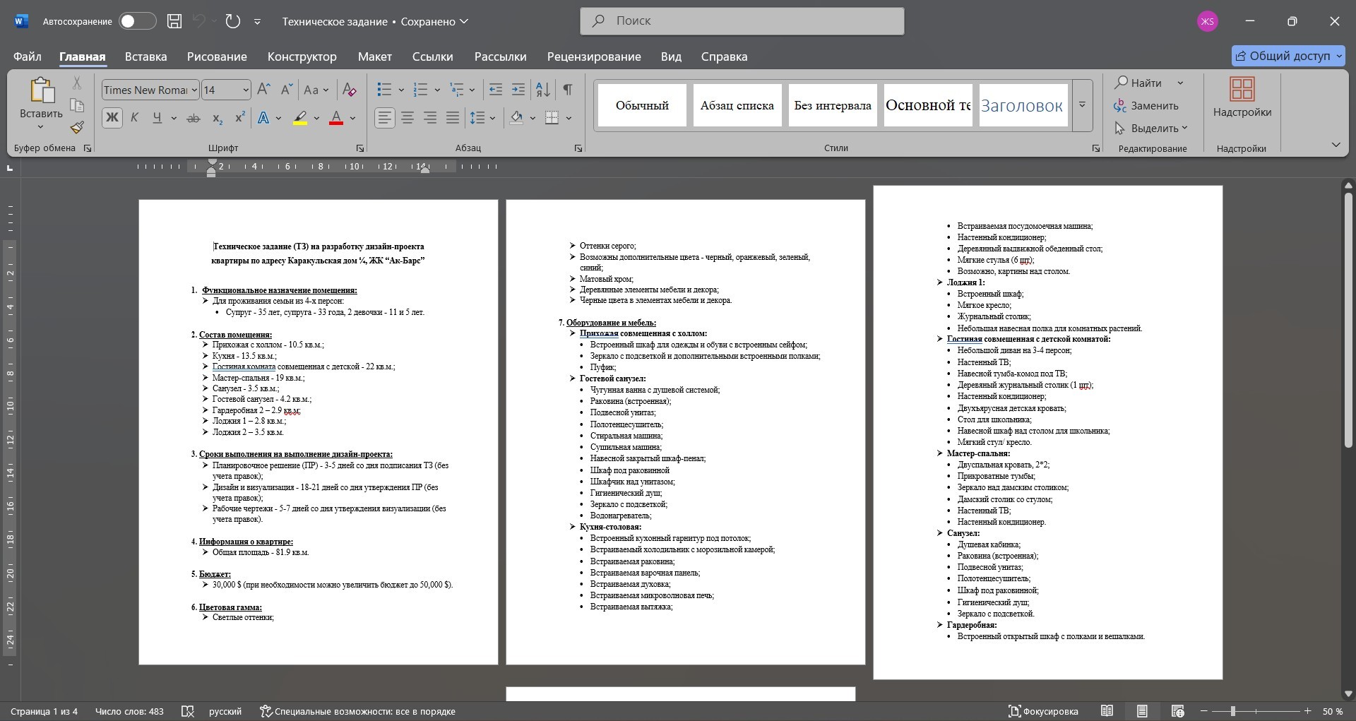 Работа начинается с изучения технического задания: планировок, чертежей, референсов, описаний стиля, палитры и материалов. От качества ТЗ зависит точность результата.