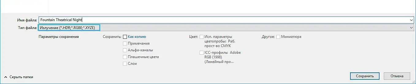Всё.Готово.Теперь меняем режим опять на 32 бит.И сохраняем с расширением .HDR.