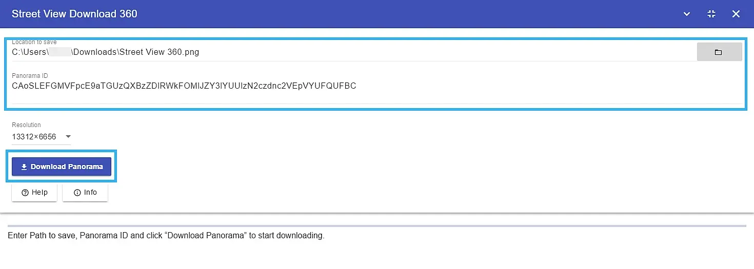 Нажав на ссылку-копируем.В открытой программе Street View Download 360 указываем путь для скачивания (указал что файл PNG),и вставляем скопированную ссылку.Жмем загрузить.