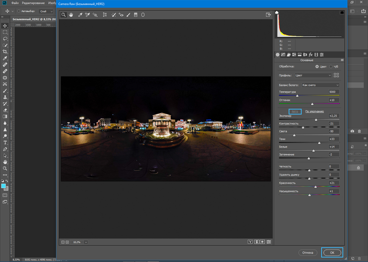 Открываем панораму в Adobe Photoshop CC.