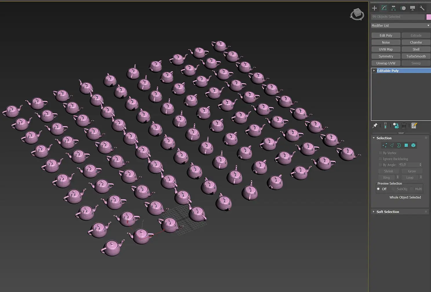 Теперь в сцене выбираем все объекты, которые мы хотим сделать инстансы. Можно руками, можно через Edit/Select by.