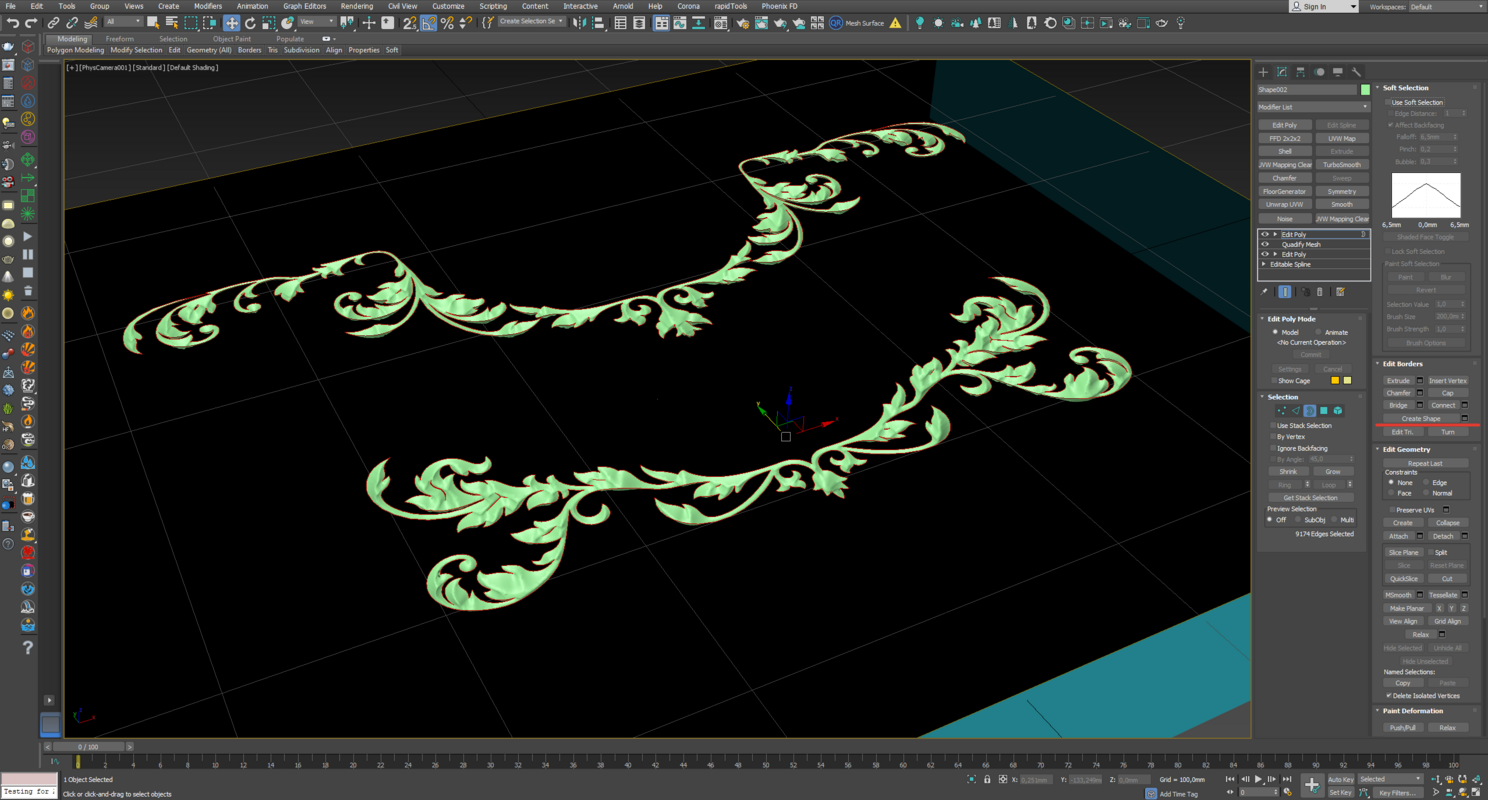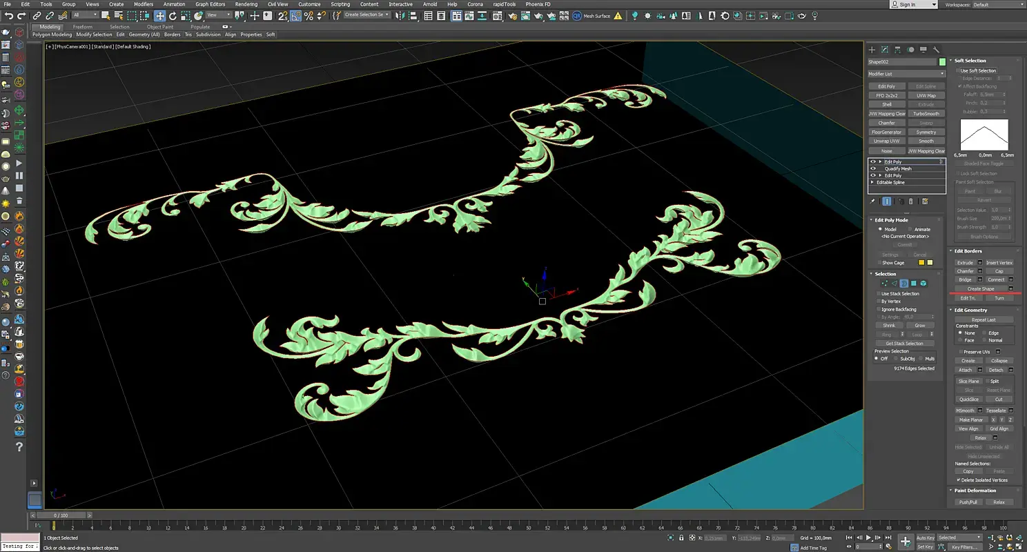 11. Теперь выделяем Border у бокса и делаем Create Shape, то же самое делаем с нашей "фрезеровкой" (Border/Create Shape)