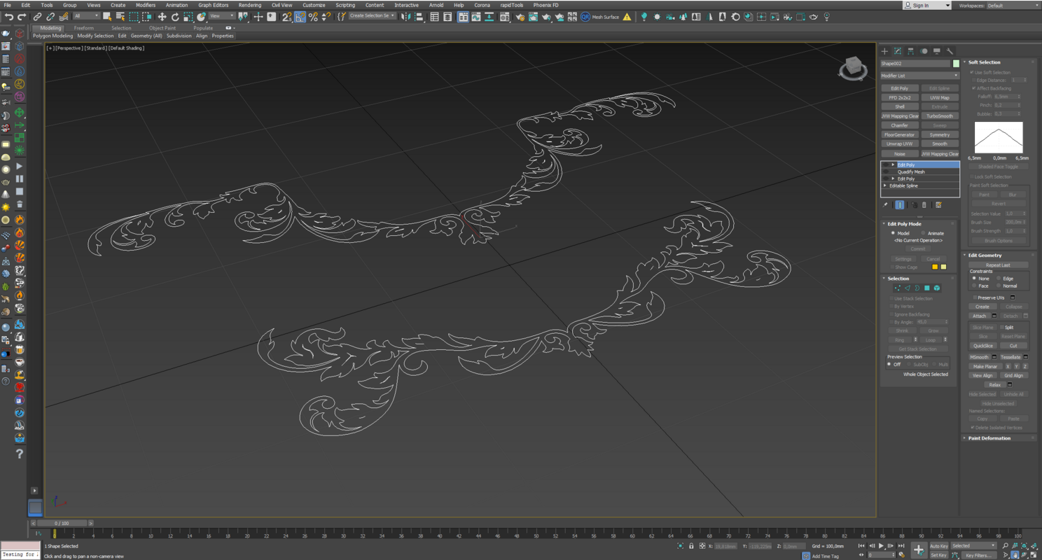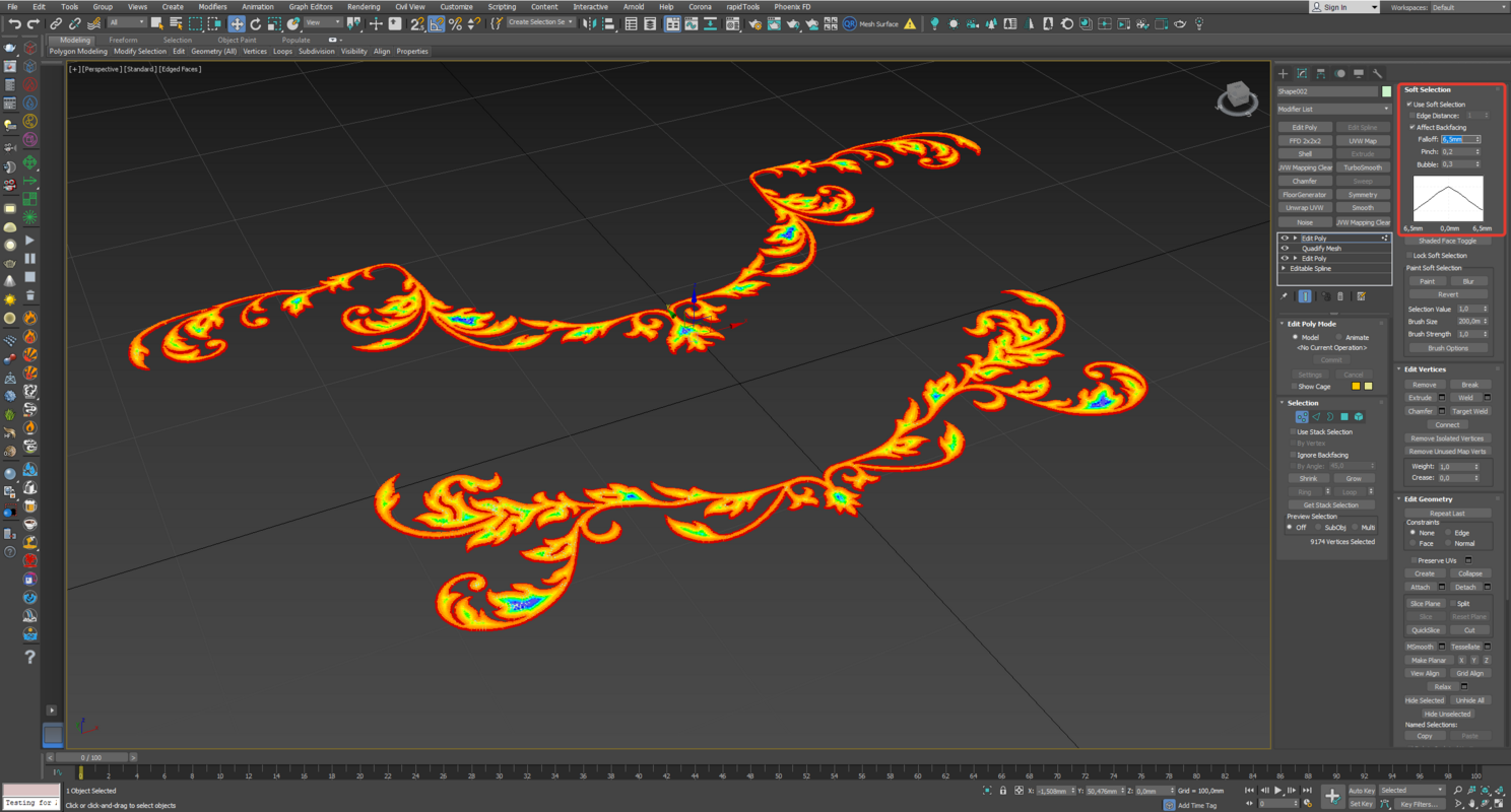 6. И галочку Use Soft Selection чуть чуть настраиваем кривую, чтоб края были более менее прямые, как угол фрезы и Falloff