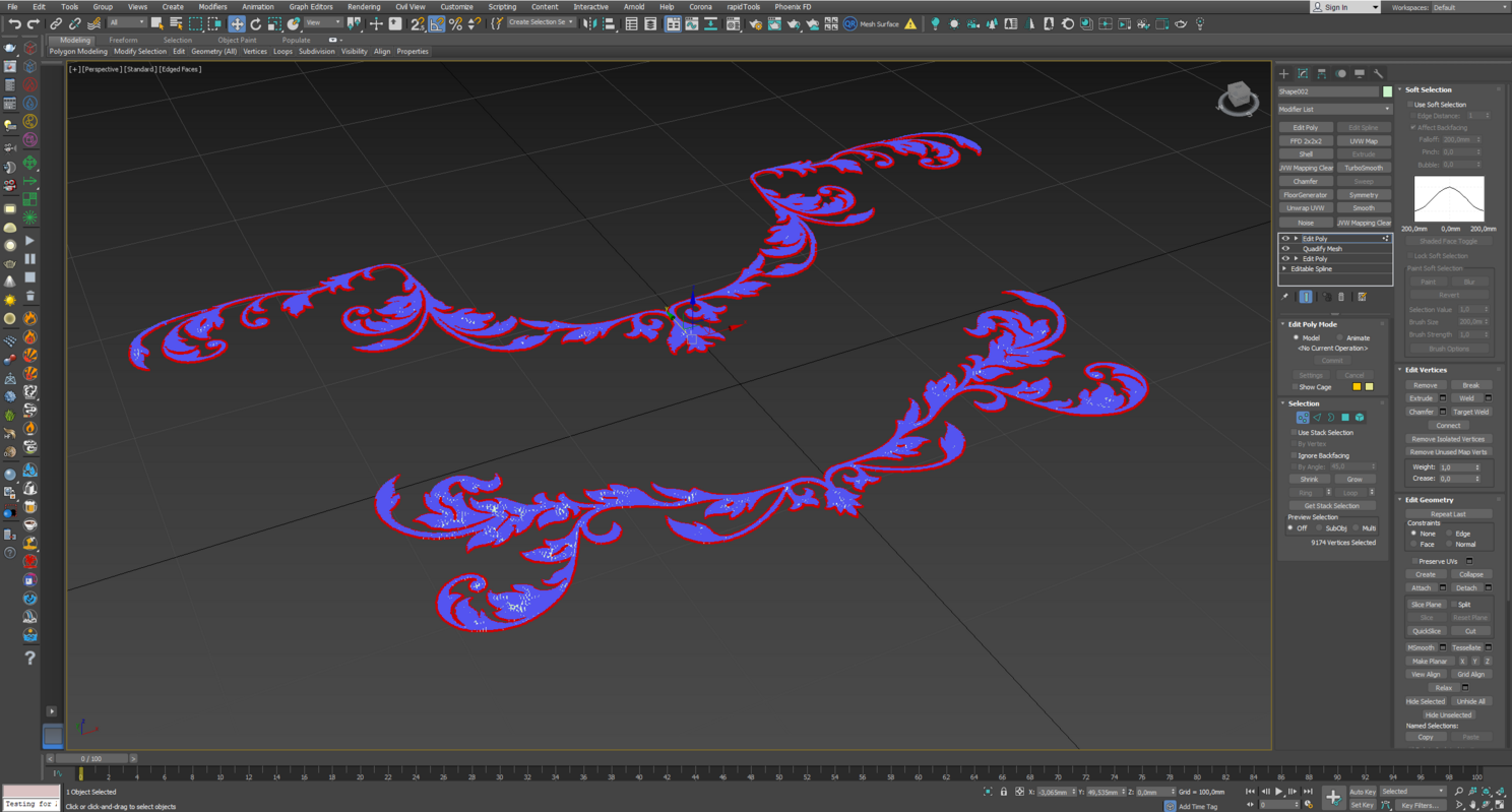2. Я его чуть подчистил, сварил все вершины и применил модификатор Edit Poly