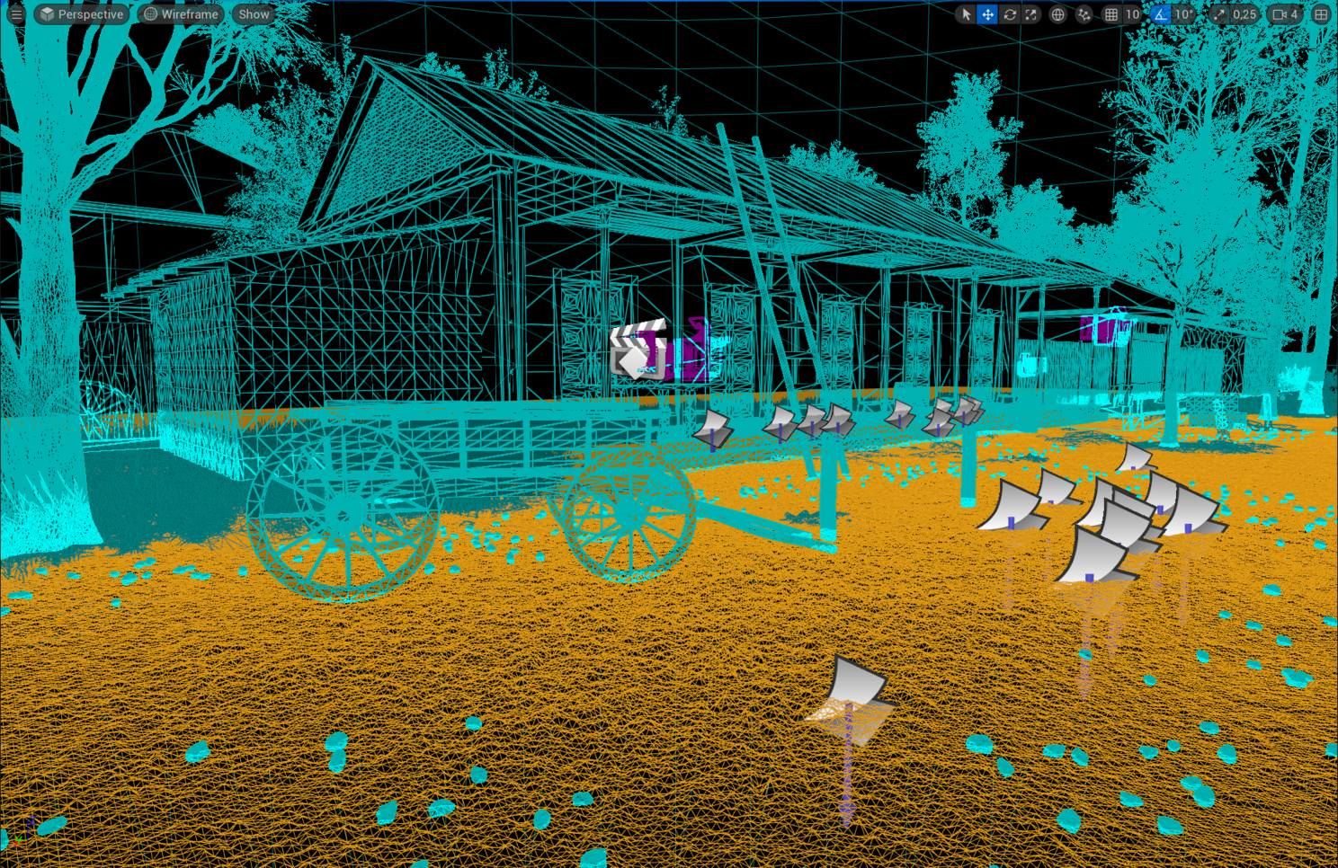 В сцене размещаю сначала основные здания, назначаю материалы (только в этом проекте дошел до материал инстансов) Много раз видел, как художники начинают с блокинга прям в анриле, и потом постепенно детализируют каждую модель по необходимости, в целом это конечно правильный подход, но опять же к нему надо привыкнуть. Для меня нагляднее сразу закидывать детализированные модели и двигать уже их по уровню.