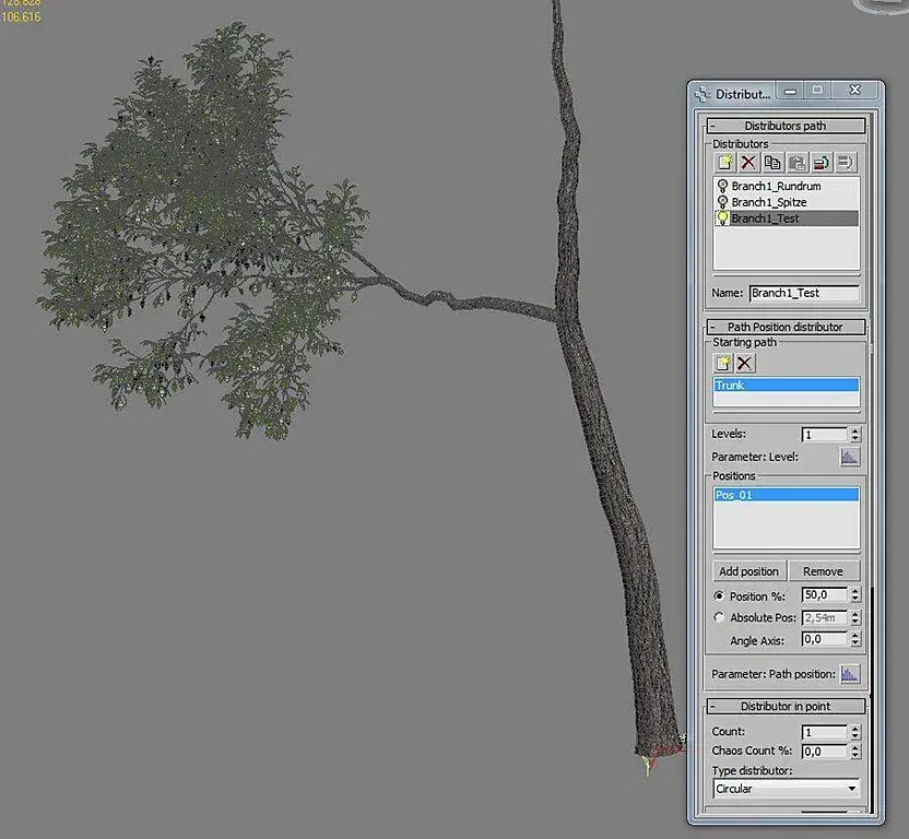 Не бойтесь большого количества геометрии. Конечно это всё будет происходить очень медленно, но если Вы действительно хотите реалистичное дерево, то Вы закончите с несколькими сотнями тысяч треугольников. В дереве выше, примерно 1.3 миллионов полигонов. Вы всегда можете облегчить геометрию путём применения альфа текстур. Но по нашему опыту работы с альфа картами, это займёт больше времени на рендере. Лучше использовать высокополигональную модель, она будет рендериться быстрее.