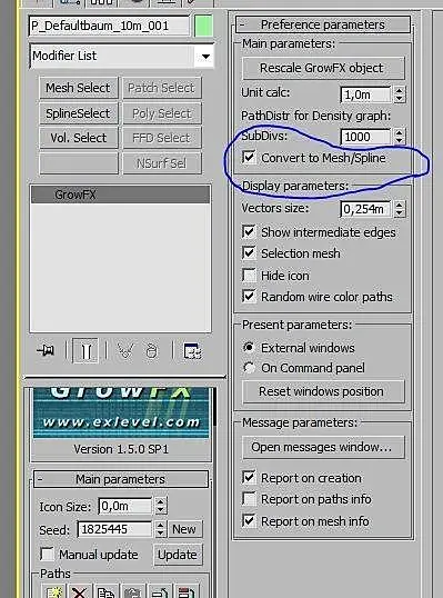 Когда Вы окончательно доделаете Вашу модель, Вы, возможно, захотите сделать резервную копию «GrowFX» объекта перед обработкой. Затем необходимо будет проверить конвертацию кнопкой «Mesh Button». Только после этого можете преобразовывать в обычную сетку. Конвертируем в «Edit Mesh». Также Вы, возможно, захотите конвертировать модель в V-Ray или Mental Ray Proxy для улучшения работы памяти.