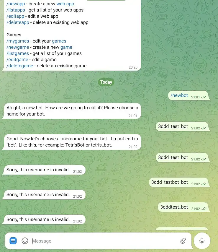 или нельзя использовать похожие имена. А так трудностей в создание бота возникнуть не должно. В конечном итоге как вы создадите бота ас интересуют два значения, это API и chat_id.