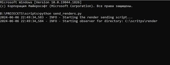 После сохранения скрипта send_renders.py открываем командную строку и запускаем скрипт командой python send_renders.py и наблюдаем следующие отклики