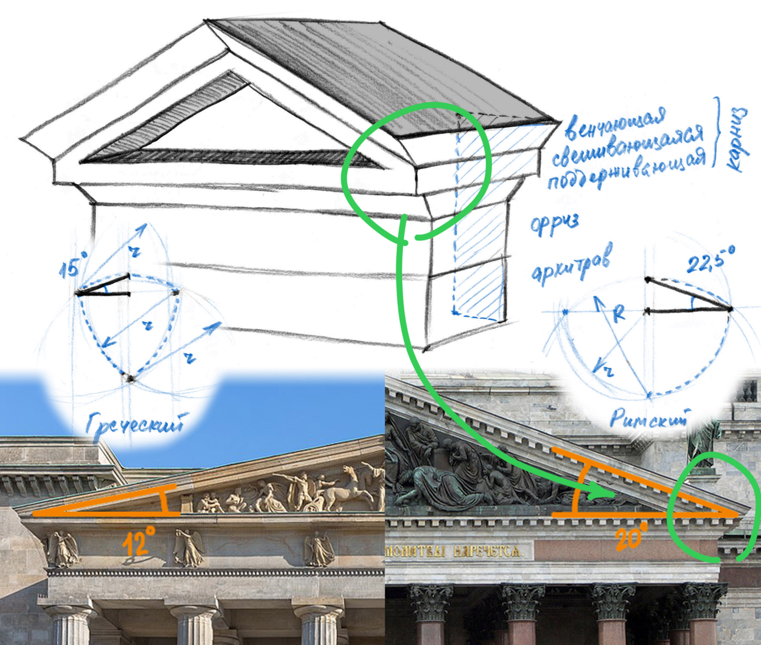 Сразу скажу, что я не читал множество книг и трудов древних мастеров архитектуры, а только пару книг советских архитекторов, ссылающихся на труды архитектора эпохи Возрождения Виньолы, который в свою очередь ссылается на труды древних римлян, которые ссылаются на греков… и почерпнул из них основные правила и нормы получения по настоящему красивой классики.