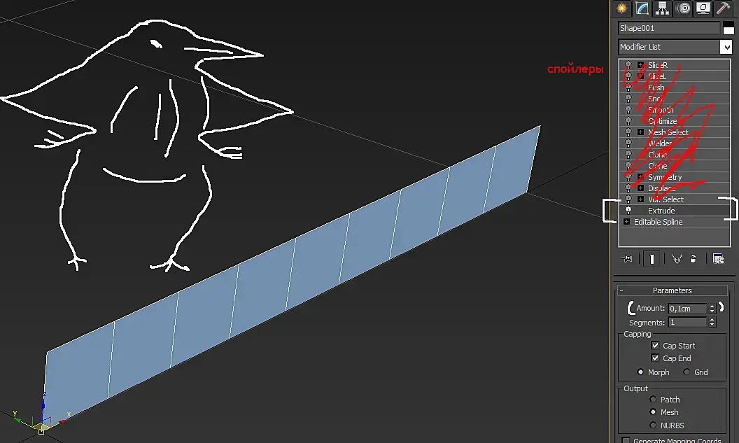 Так-сплэйн, время давануть, точнее экструднуть модификатором Extrude.