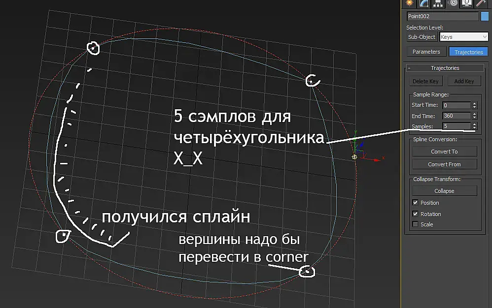 Как в самом начале, помните? Получаем из траектории сплайн, только по умолчанию у него вершины сглаженные, правой мышой на них и в corner.