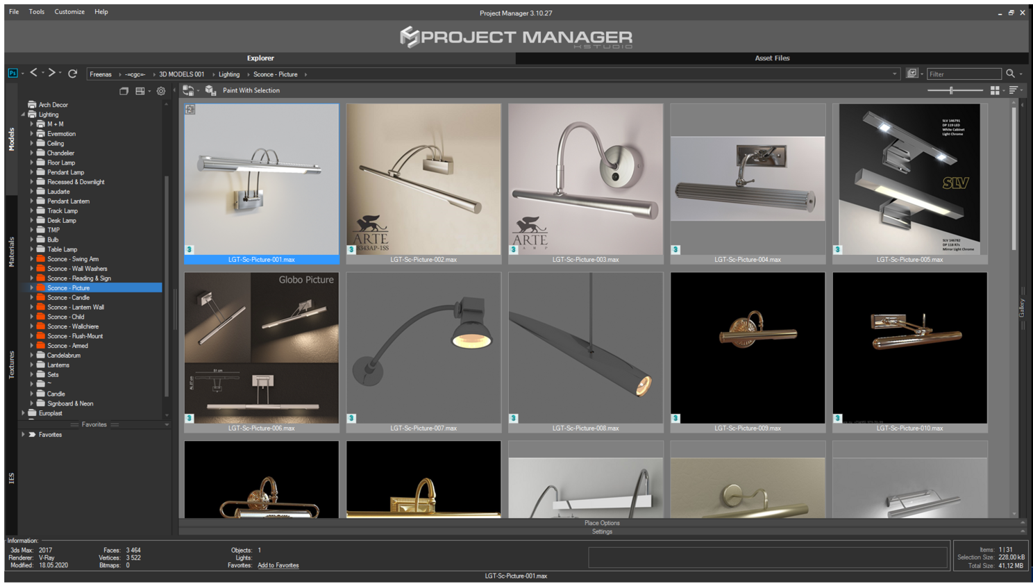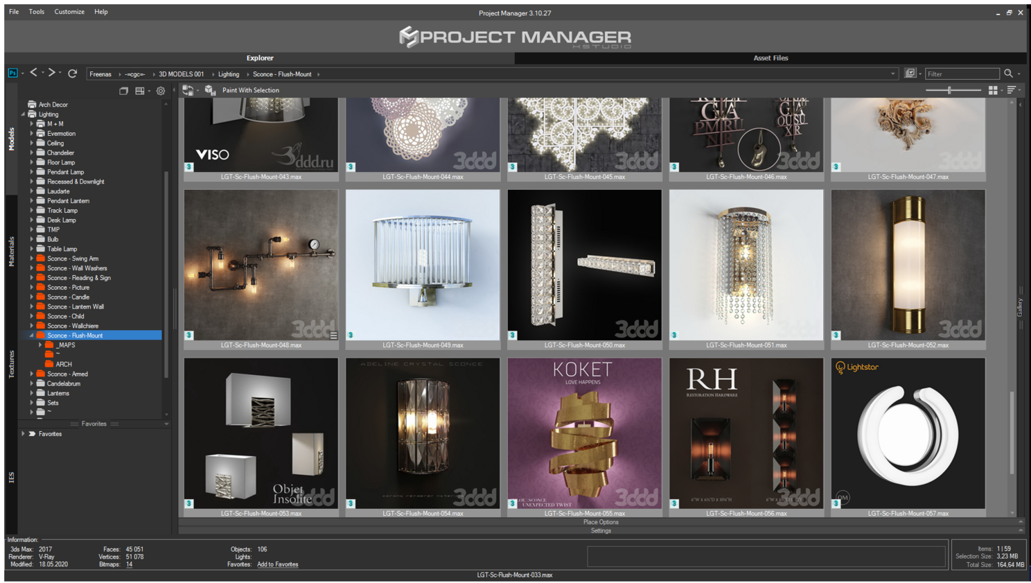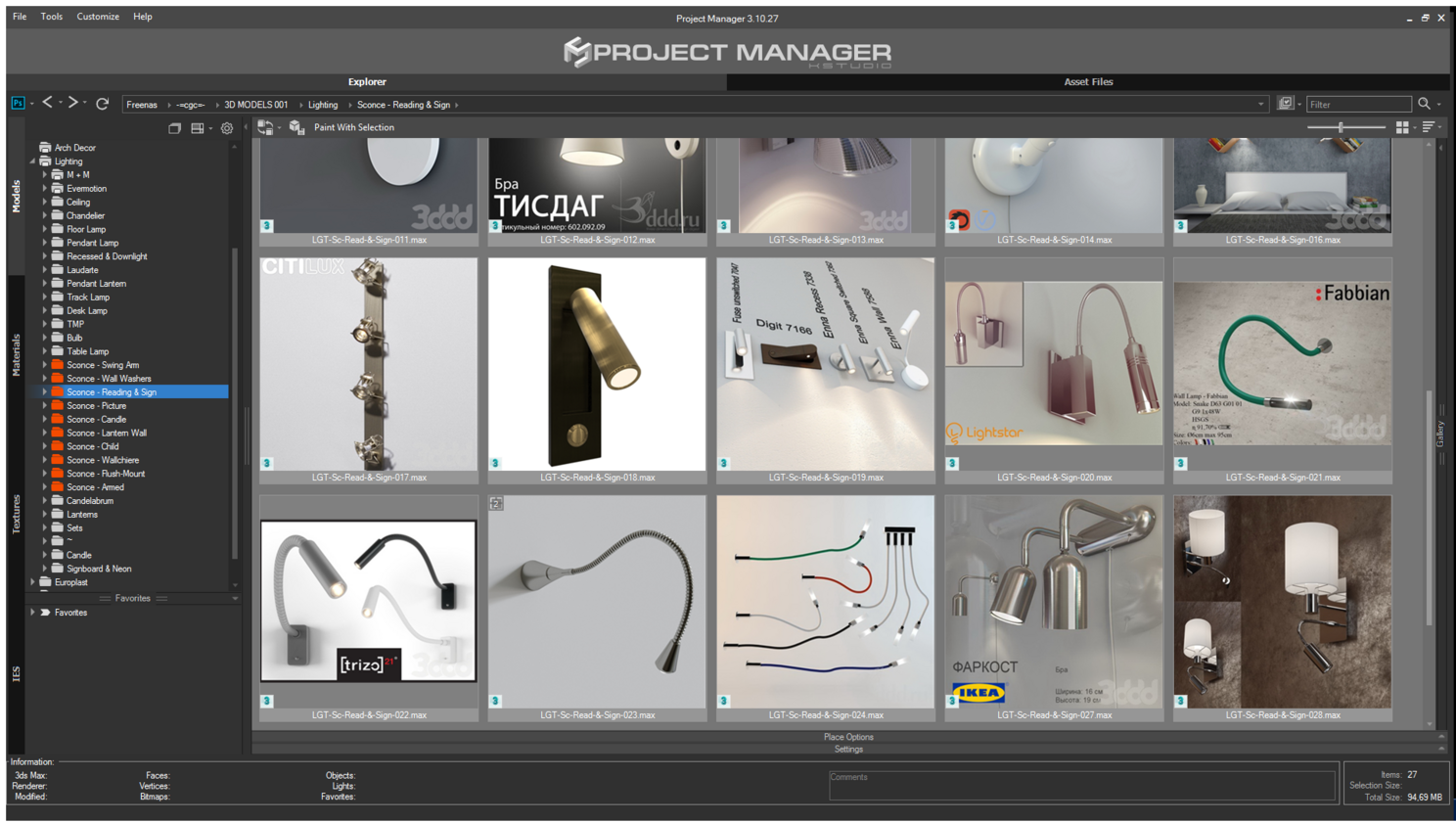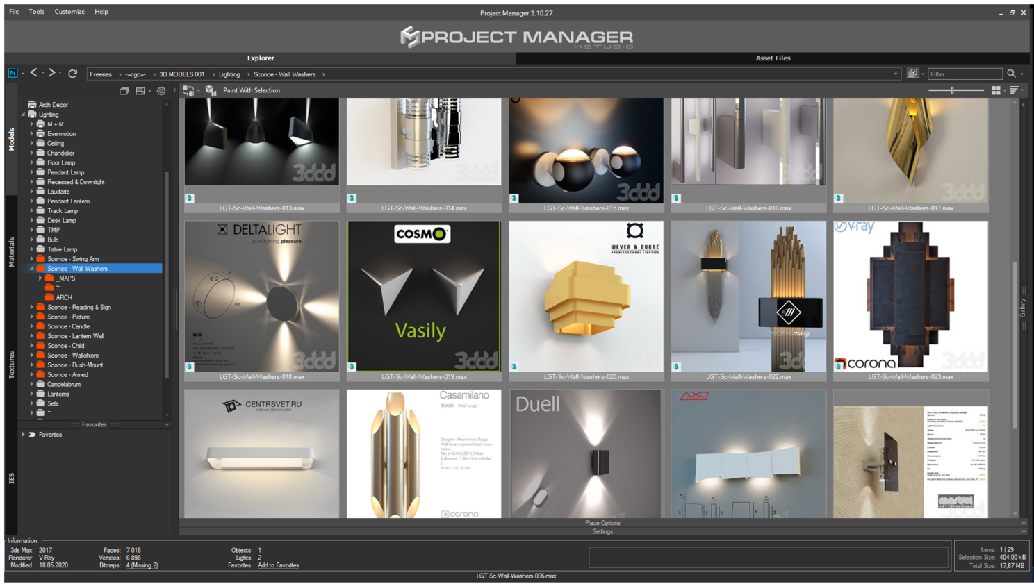 Вот таким образом можно разобрать вашу библиотеку используя стандартный проводник Windows, но если интегрировать в свой пайплайн плагин Project Manager , с которым есть возможность работать «не выходя» из 3ds max, то можно дополнительно «затеговать» 3d модели.
