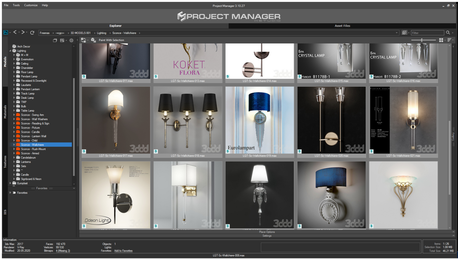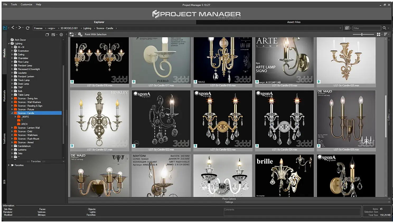 После того как вы разберете все бра по папкам, то "расшарить" их в Project Manager - проблема "двух кликов". Далее, чтобы оптимизировать поиск в Project Manager , нужно использовать теги, по которым можно дополнительно разделить объекты, например, по стилю. Вот список тегов, которые я использую в своей практике: