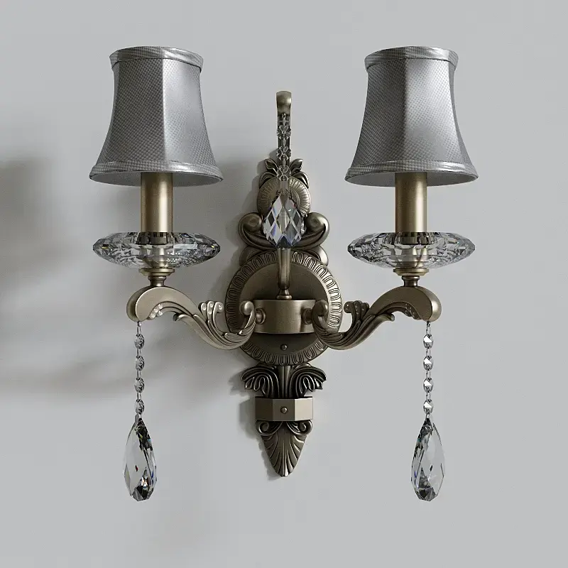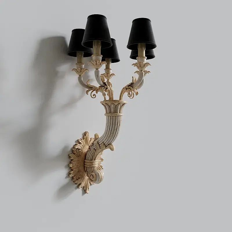 Wallchiere sconce – перевода слова «wallchiere» в английских словарях я не нашел. Есть мнение что «wallchiere» это производное от «torchiere». «Torchère» старофранцузское слово, происходящее от слова «torche» - факел. Данное слово также заимствовано русским языком и известно нам как «торшер», т.е. напольный светильник, «wallchiere» (звучит как «волшер», если адаптировать на французский манер), соответственно, это настенный светильник. В английском языке слово «факел» («torch») пишется почти так же, как французское слово «torche», означающее тоже самое.
