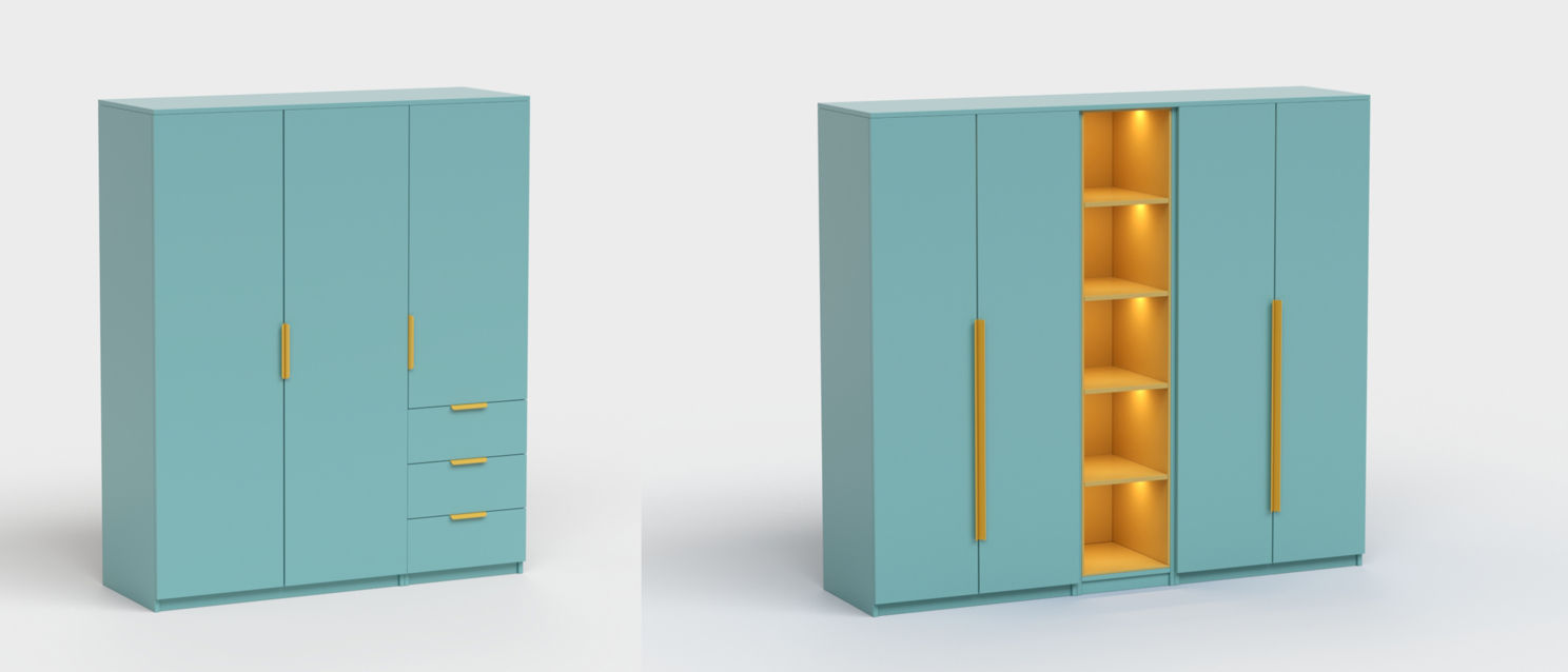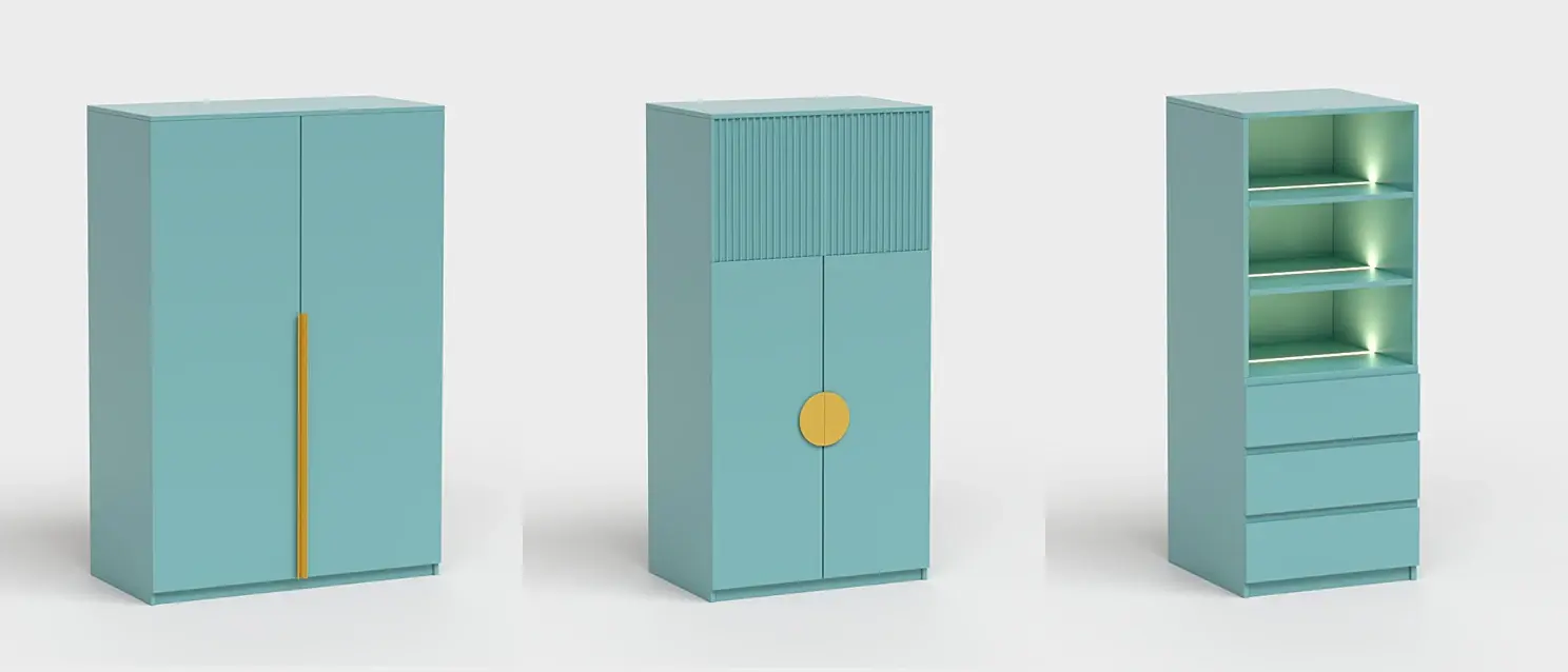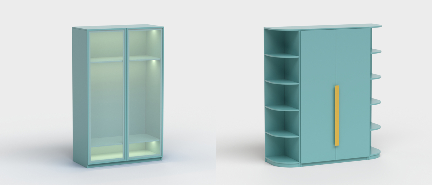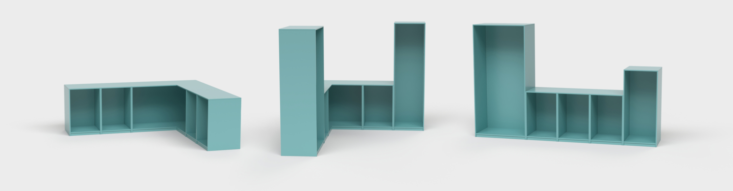 Первое, что хочется упомянуть, это возможность создания угловых и торцевых модулей, со всеми необходимыми элементами (дверьми, полками).