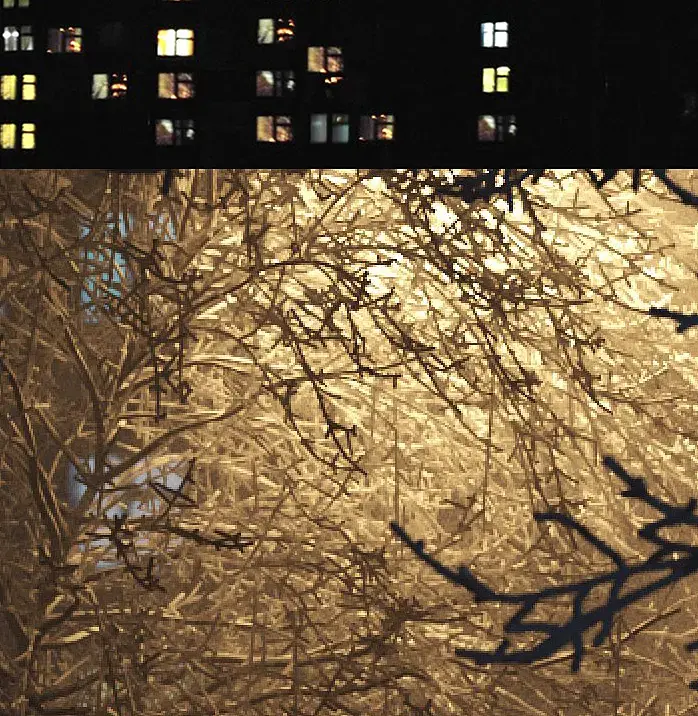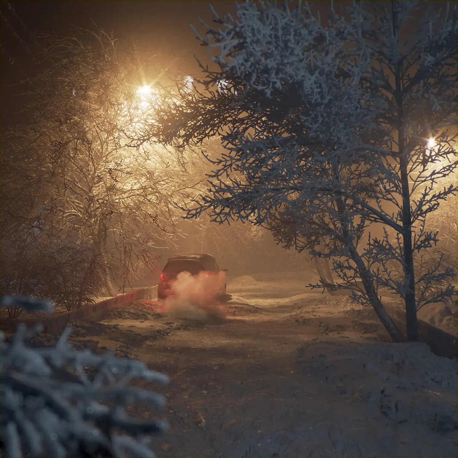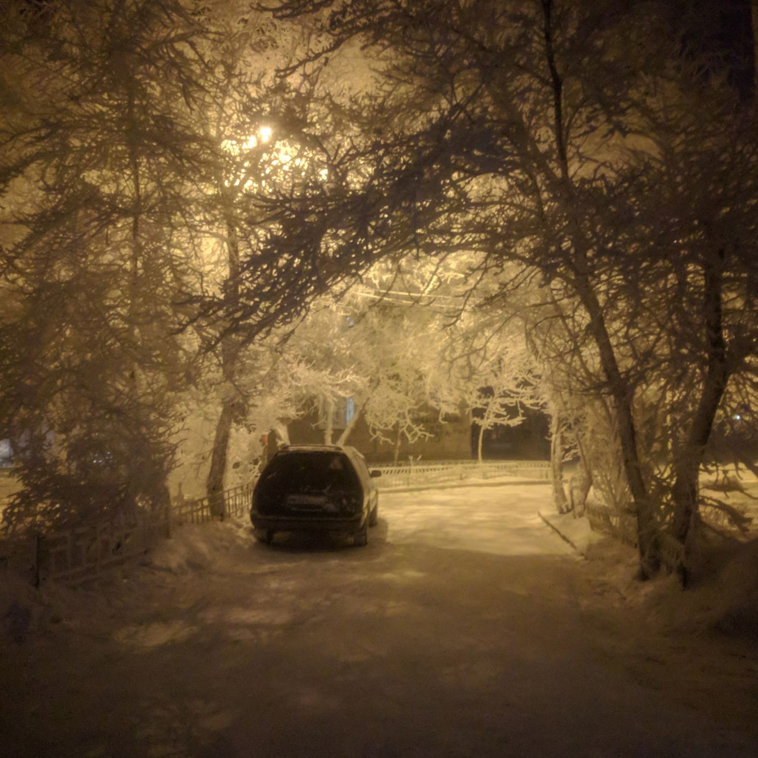 Все как всегда начинается с референсов, на сей раз референсом была сама жизнь и не отступающие сорокаградусные морозы в январе. Замороженные деревья, сквозь которые пробивается оранжевый свет уличного фонаря, один кадр на сломанную камеру в смартфоне - референс готов.