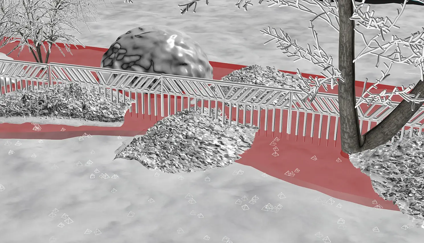 Далее то, что у меня вызывало вопросы по реализации, сначала я конечно хотел отсканировать реальную дорогу, с вытоптанными следами. Но мне же лень, да и референс в округе я не нашел, да и в -40 походи, посканируй.