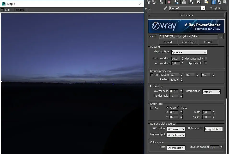 Для environment-освещения я использовал HDRI карту из сборника VIZPARK - skydome 04