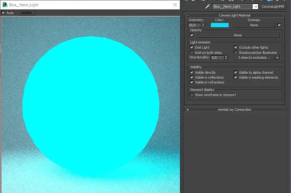 Надписи - это обычные сплайны с толщиной и материалом CoronaLightMTL. Интенсивность и значения диффуза менял и регулировал на глаз, ориентируясь по картинке из интерактивного рендера.