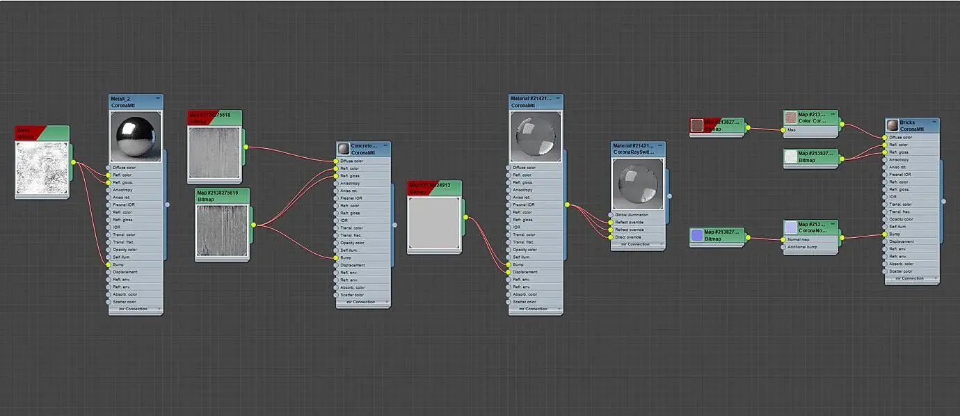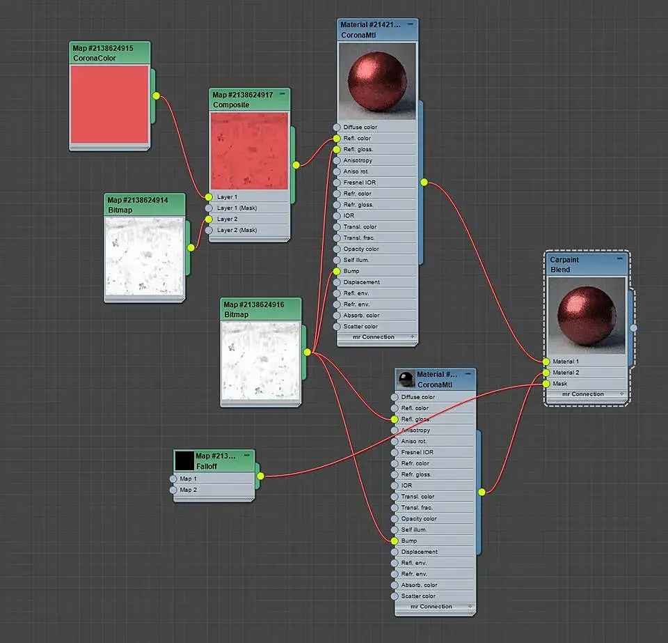 Материал поверхности автомобиля делал по старому уроку с официального ютуб-канала Corona renderer через Blend материал. В данном случае добавил немного грязи.
