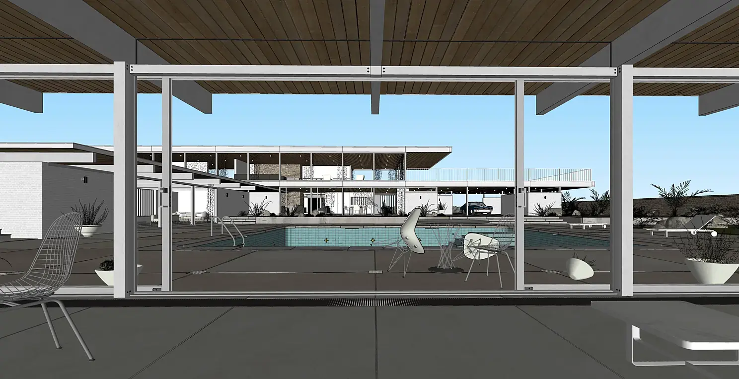 По этой причине мы ввели сетку для конструкций. Нам необходимо было создать современную, светлую и простую архитектуру даже несмотря на то, что используем мы жесткую конструкцию. Мы были вдохновлены архитекторами модернистами, такими как Donald Wexler, Richard Neutra и Pierre Koenig.