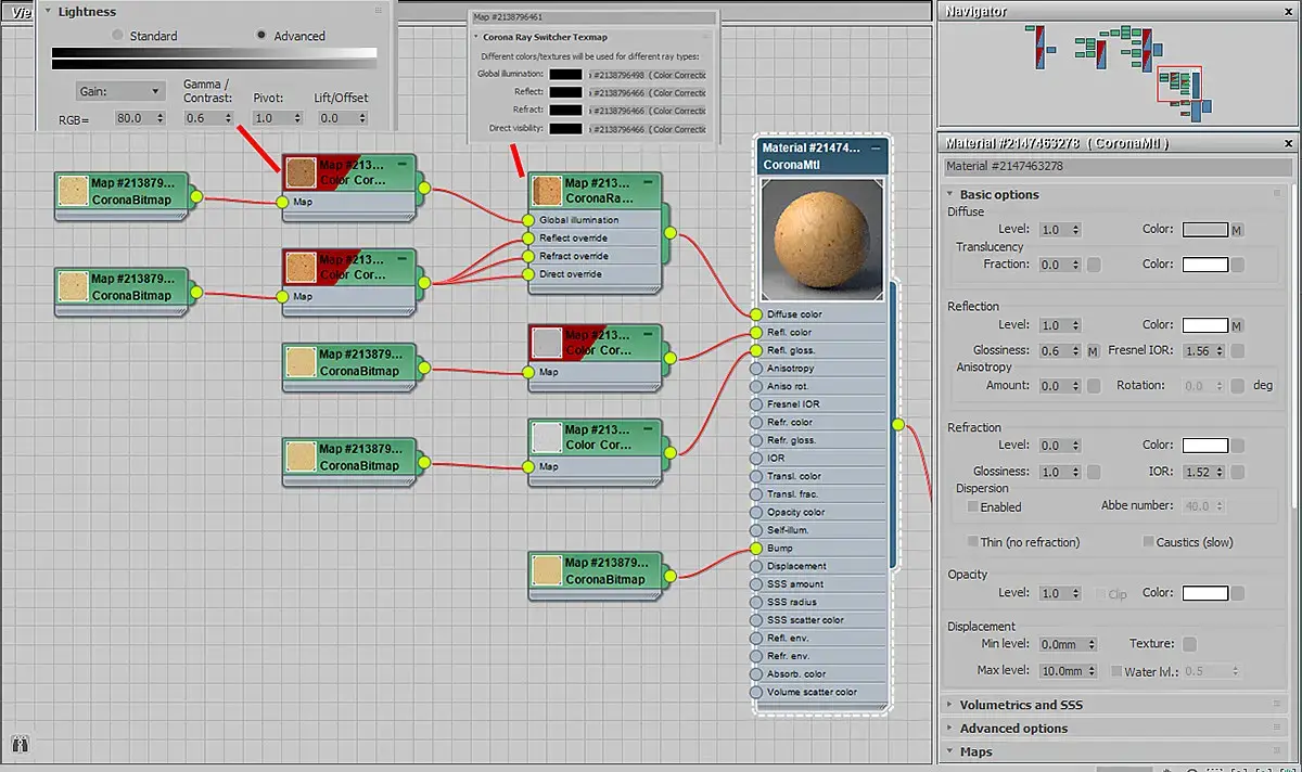 Все материалы для каждой отдельной сцены использовались одинаковые, только слегка подправлялся оттенок и сила отражения, чтобы сделать объект более выразительным. В основном все текстуры брались из различных сборников с хорошим разрешением и качеством.