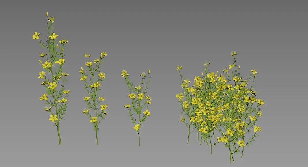 Прямо у здания был густо посажен зверобой с жёлтыми цветочками, этой модели в сборниках не нашёл и пришлось поискать на 3д стоках.
