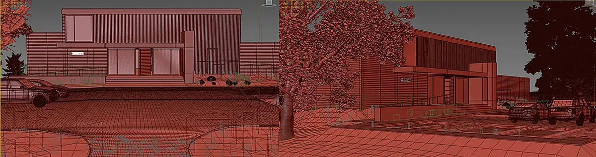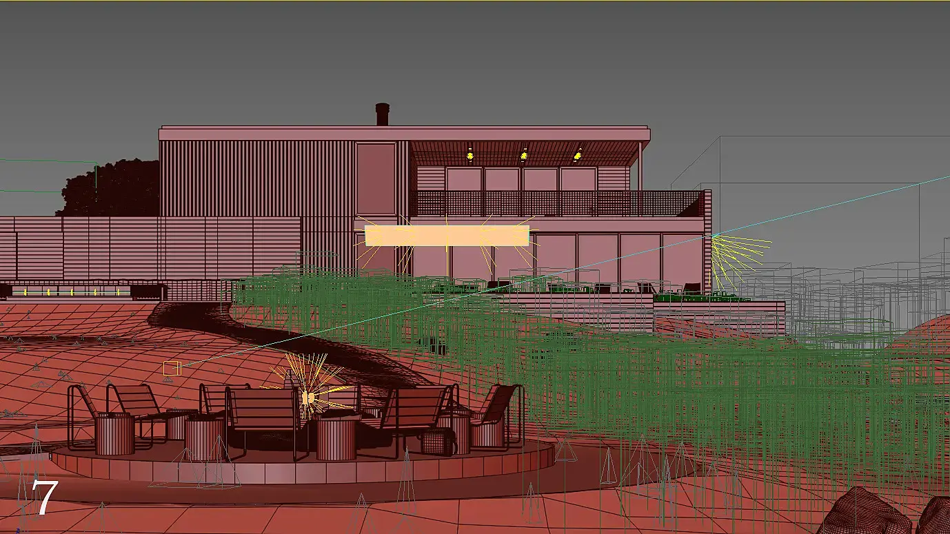 Добрый день коллеги. В этой статье расскажу все подробности создания серии картинок «Autocamp» . Эта работа выросла из реального рабочего проекта одного американского клиента. Для него создавалось всего три ракурса: 2 экстерьерных и один интерьерный, впоследствии я их доработал на свой вкус и сделал дополнительные рендеры для полноты истории, хотелось сделать именно связанную и атмосферную работу. Она состоит из 8-ми картинок и на каждую создавалась отдельная сцена со своими настройками света, материала и геометрии. Делал это для удобства и оптимизации ресурсов компьютера. Для смысловой связки всех картинок старался использовать одних и тех же фотошопных людей, но в разных позах и одежде, что придало целостность работе. Персонажей брал из сборника «Viz people Casual 7», они как раз хорошо вписались в ту атмосферу, которую хотелось создать. Этот проект мне понравился ещё на стадии работы с клиентом, он был очень хорошо проработан: интересная архитектура здания, ландшафт и разнообразие растительности придали изюминку этой работе.