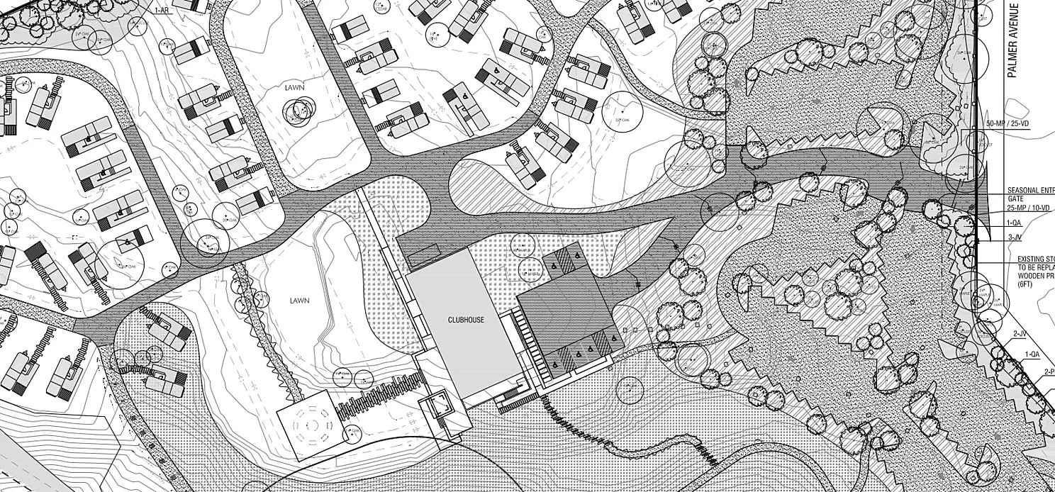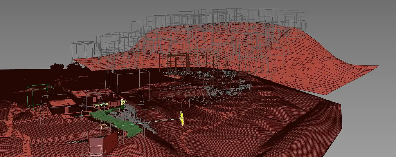 Проект представляет собой базу отдыха для автокемпинга и состоит из различных зон для парковки фургончиков и главного базового здания клуба. Основную модель здания и сам ландшафт был предоставлен клиентом, но я обычно всё равно проверяю сцену и дорабатываю разные нюансы, которые мог упустить 3д моделлер. Ниже план растительности с зонами посадки.