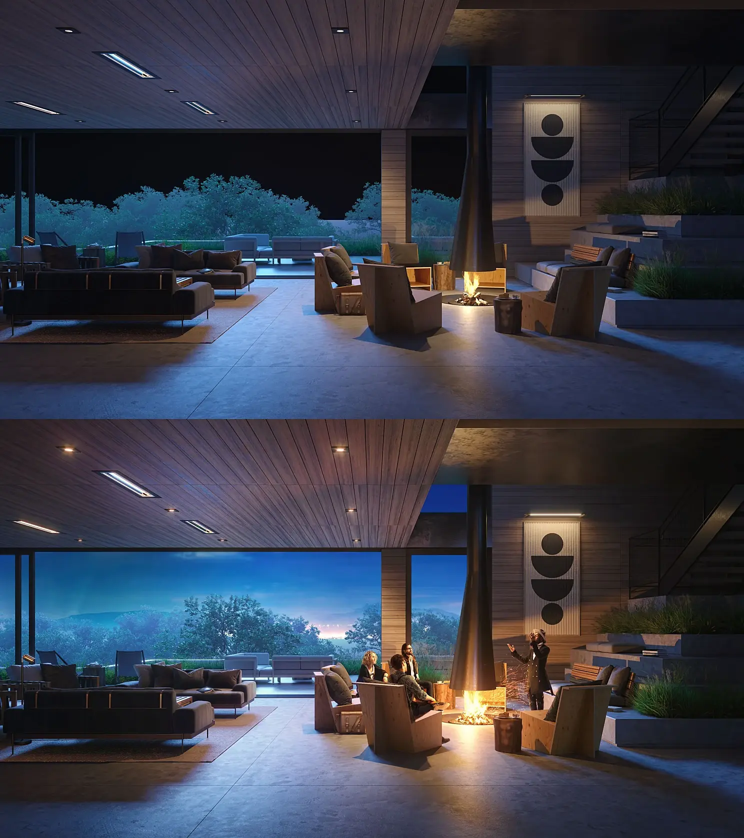 Остальные рендеры подверглись всего лишь небольшой цветокоррекции и вписыванию людей. Поэтому не буду подробно останавливаться на них, и просто покажу результаты до и после.