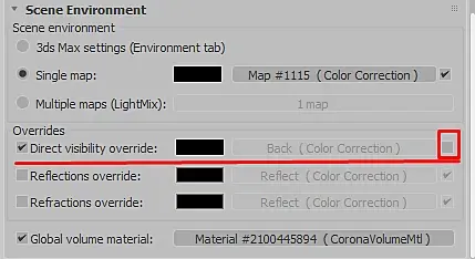 В ракурсе, где дом утопает в зелени, использовал только одну HDRI карту без подмен бэкгрануда. Настройки ниже.