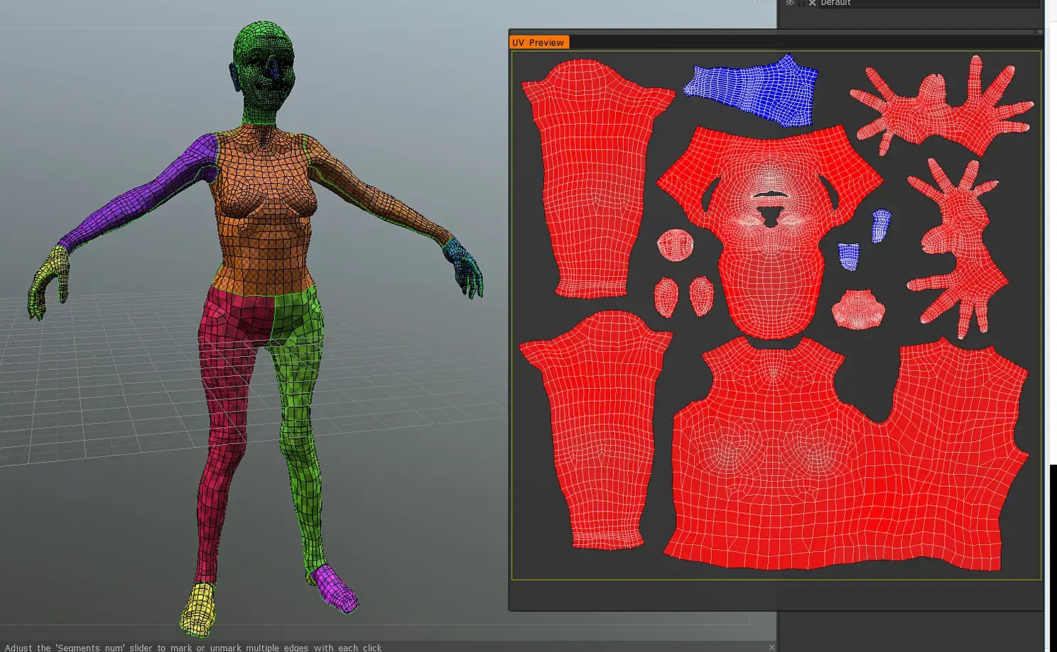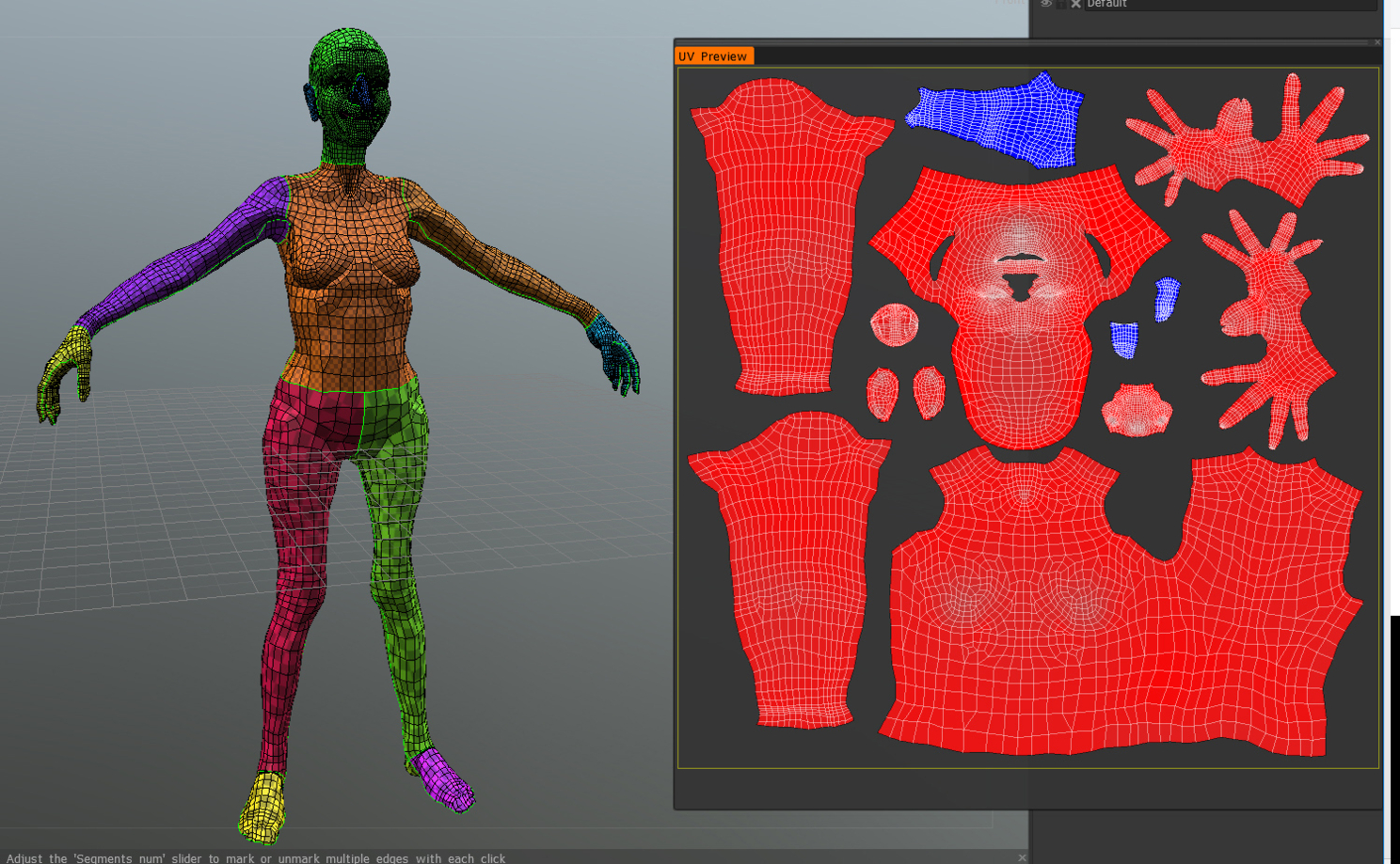Всё, наша бабочка прилетела на место, сохраняем её тело как obj. Теперь опять муторная часть. Открываем в марвелосе нашу сцену с одёжкой, и импортируем нашу позу как Morph Target. Ждём пока просчитает, поправляем платье, то да сё – получаем модель.