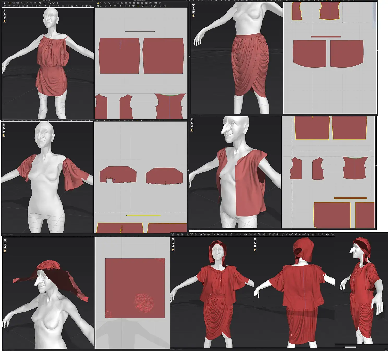 Настало время для самого муторного занятия – одёжка. Делал в марвелосе. Тут пришлось повозиться. Самое сложное оказалось сделать платок. Вы видите, как выглядит платок на рефах)) Я этот платок делал по времени так же, как всю остальную одежду – в итоге все узлы у меня развязались, на затылке образовалась лысина, я плюнул и навертел то, что навертел. Это просто ужас. Одёжку я уже в самом максе прошёлся ProOptimizer и Quadify - для уменьшения веса.