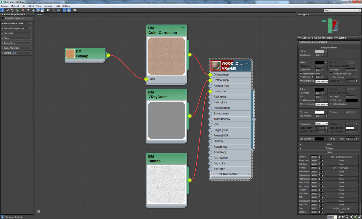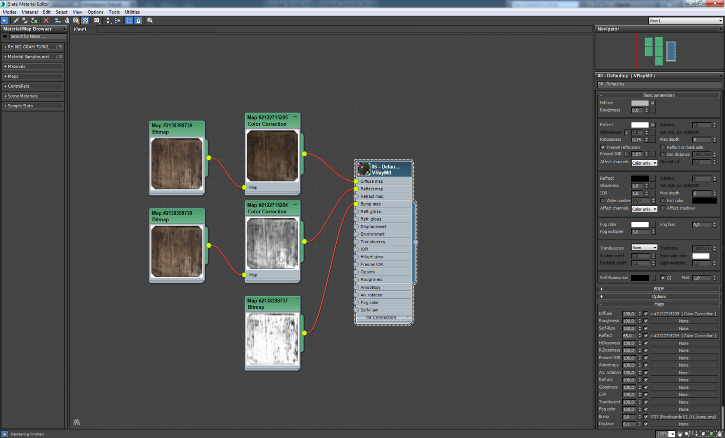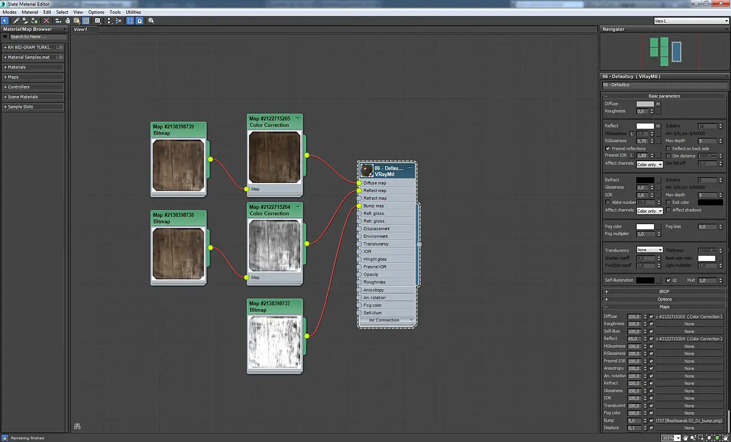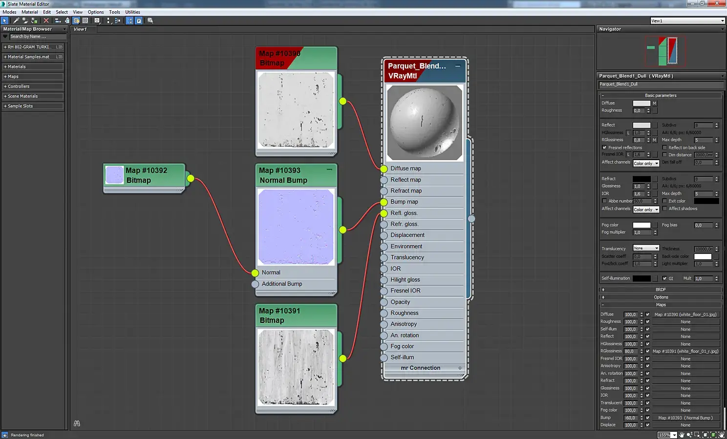 Материал плитки на кухне, на полу. Для разнообразия плитки использовалось 60 текстур разного оттенка. Для их случайного распределения отлично подходит карта MultiTexture. Чтобы было лучше видно текстуры, я буду показывать материалы плитки и паркета с использованием одной текстуры, без MultiTexture.