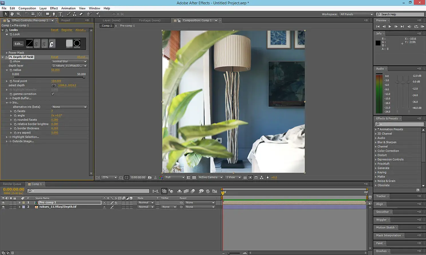 После этого применяю плагин Frischluft Depth of Field. Переключаю режим show в iris и настраиваю его параметры.
