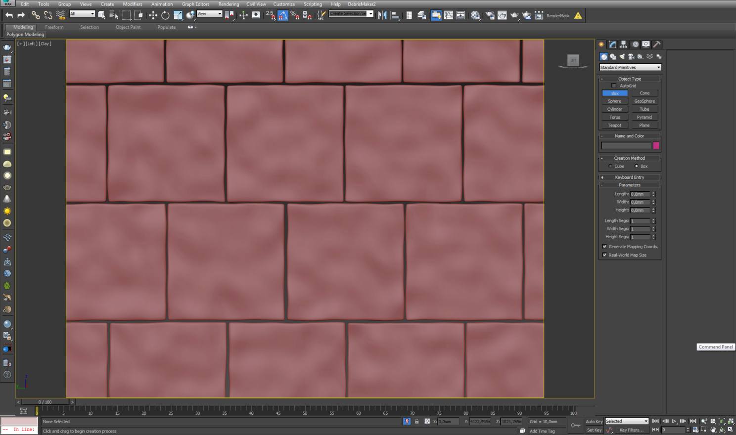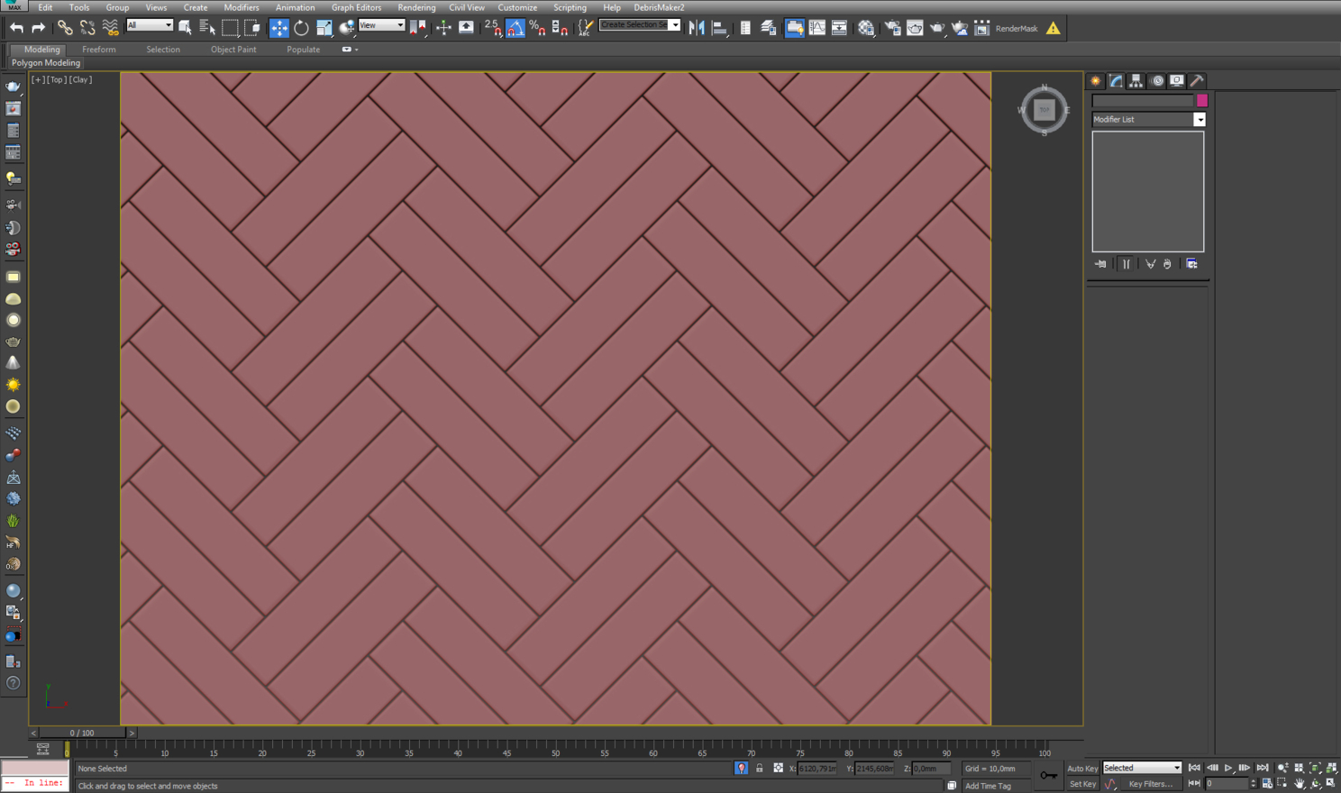 Основную форму плиток на фартуке сделал с помощью floor generator'a. Это были обычные боксы 130 × 130 мм с расстоянием в 2 мм для затирки. После этого добавил заготовкам поддерживающие ребра и применил модификатор turbosmooth для уплотнения сетки. Затем добавил модификатор noise, чтобы придать неровности плитке.
