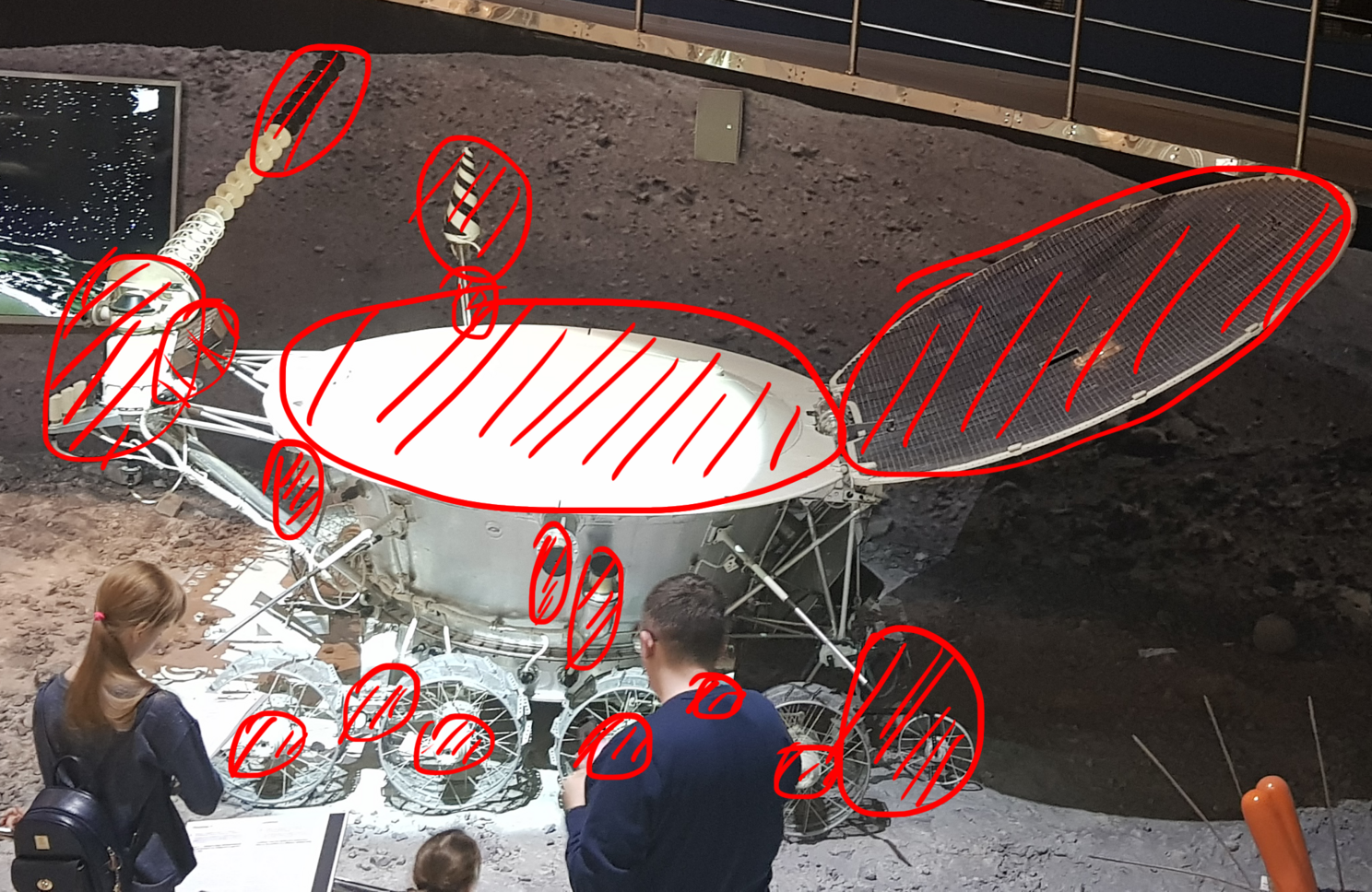 Хотелось что-то с натуры сделать. И тут мне вспомнилось, что в году 2014 я был в Музее космонавтики, и там стоял замечательный макет (как мне тогда показалось) аппарата "Луноход". Недолго думая, я собрался, взял младшую сестру, и поехал туда снова. После испытания всех интерактивных экспонатов, которые нам попадались на пути, мы всё-таки добрались до того, за чем пришли.