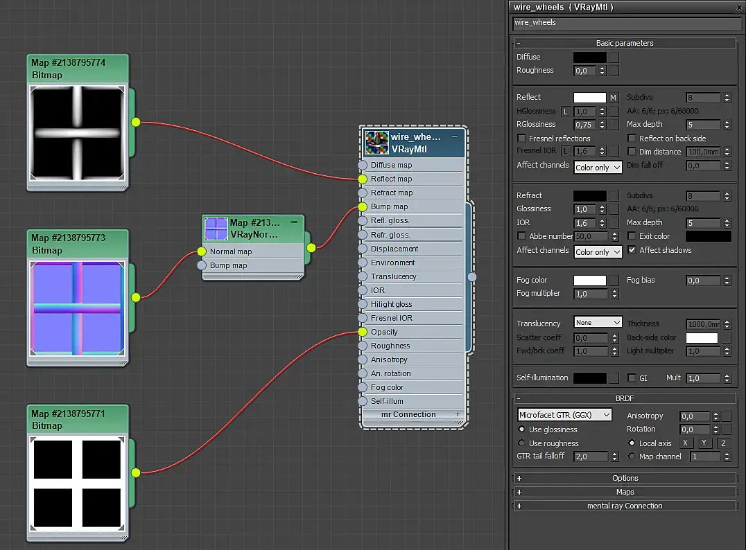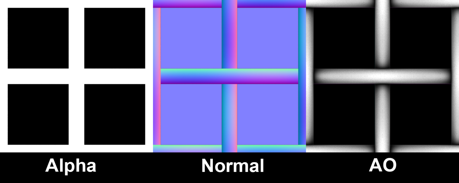 Карты для материала сделал из этого hi-poly фрагмента, с помощью скрипта RenderMask
